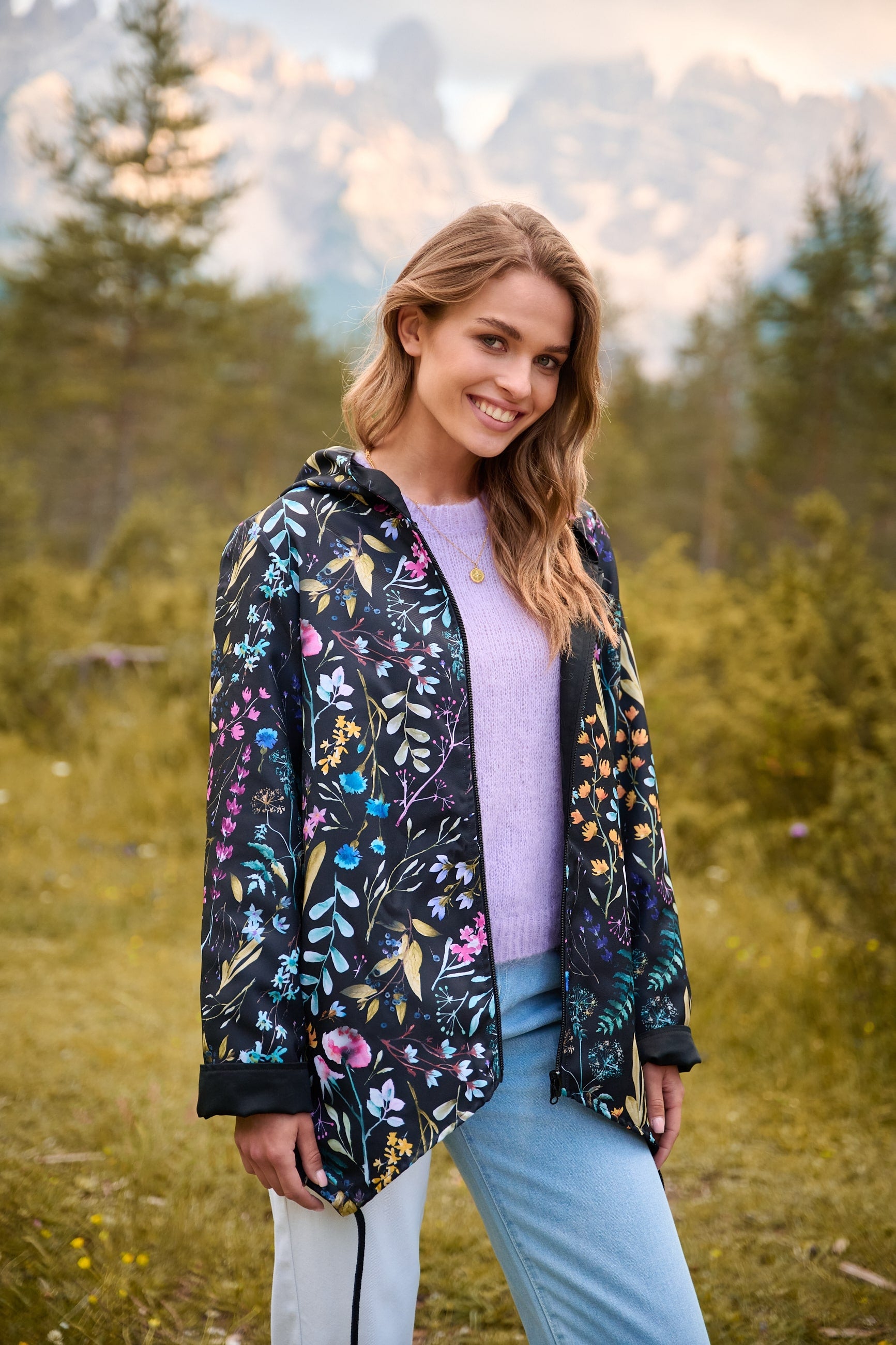 Sportowa kurtka na wiosnę sprawdzi się w wielu odmiennych stylizacjach. Część czarną załóż do kolorowej czapki, czy rozpinanej bluzy. Wersja w pastelowe kwiaty będzie pasować do gładkich ubrań.