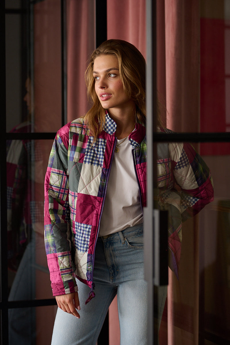 Kolorowe kratki, bordo i odcienie oliwki wprowadzają retro klimat, który idealnie pasuje do miejskich spacerów i weekendowych wypadów za miasto. Noś ją z ulubionymi jeansami, dresami lub sukienką i botkami – ta kurtka odnajdzie się w każdej stylizacji.