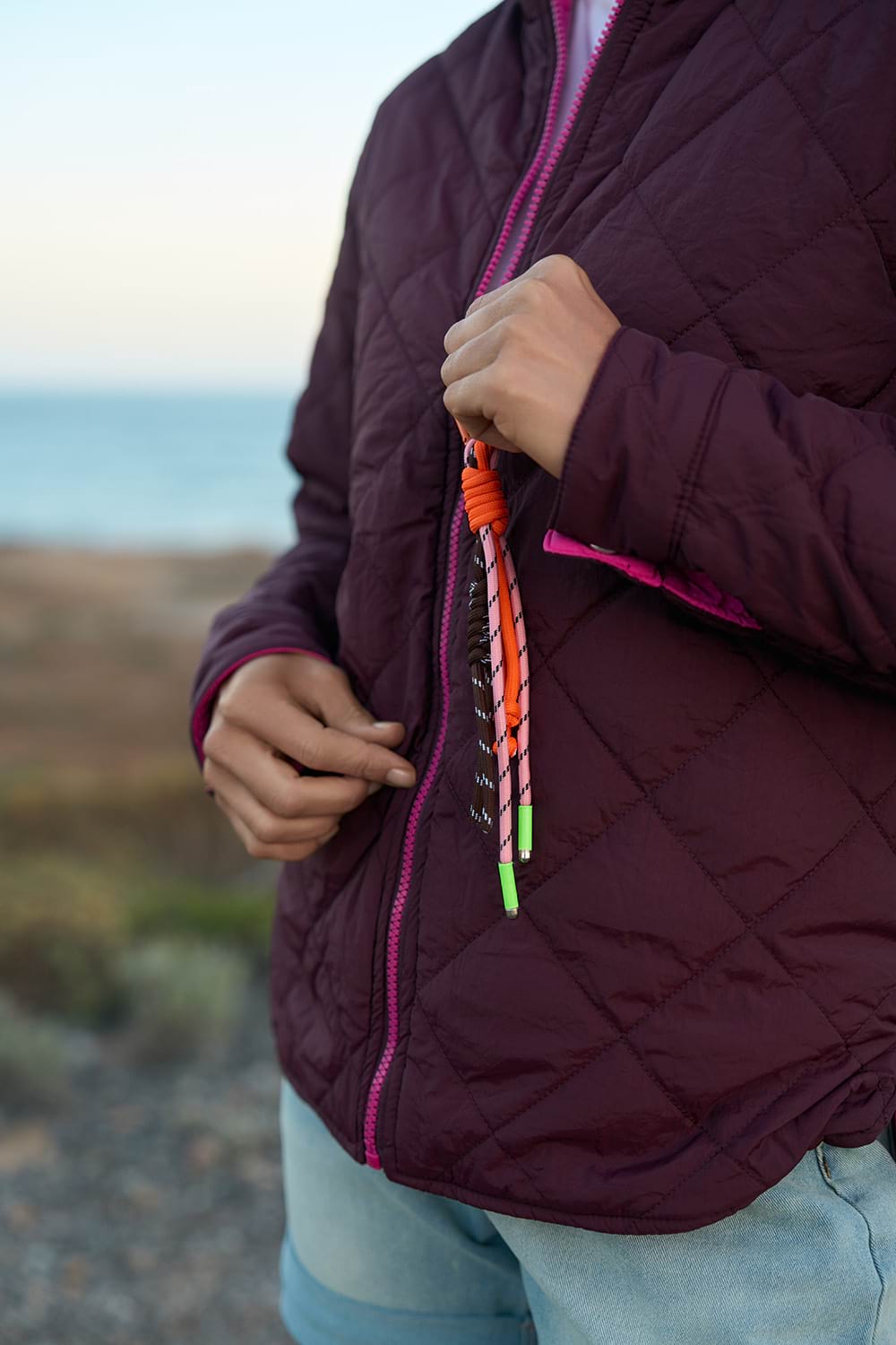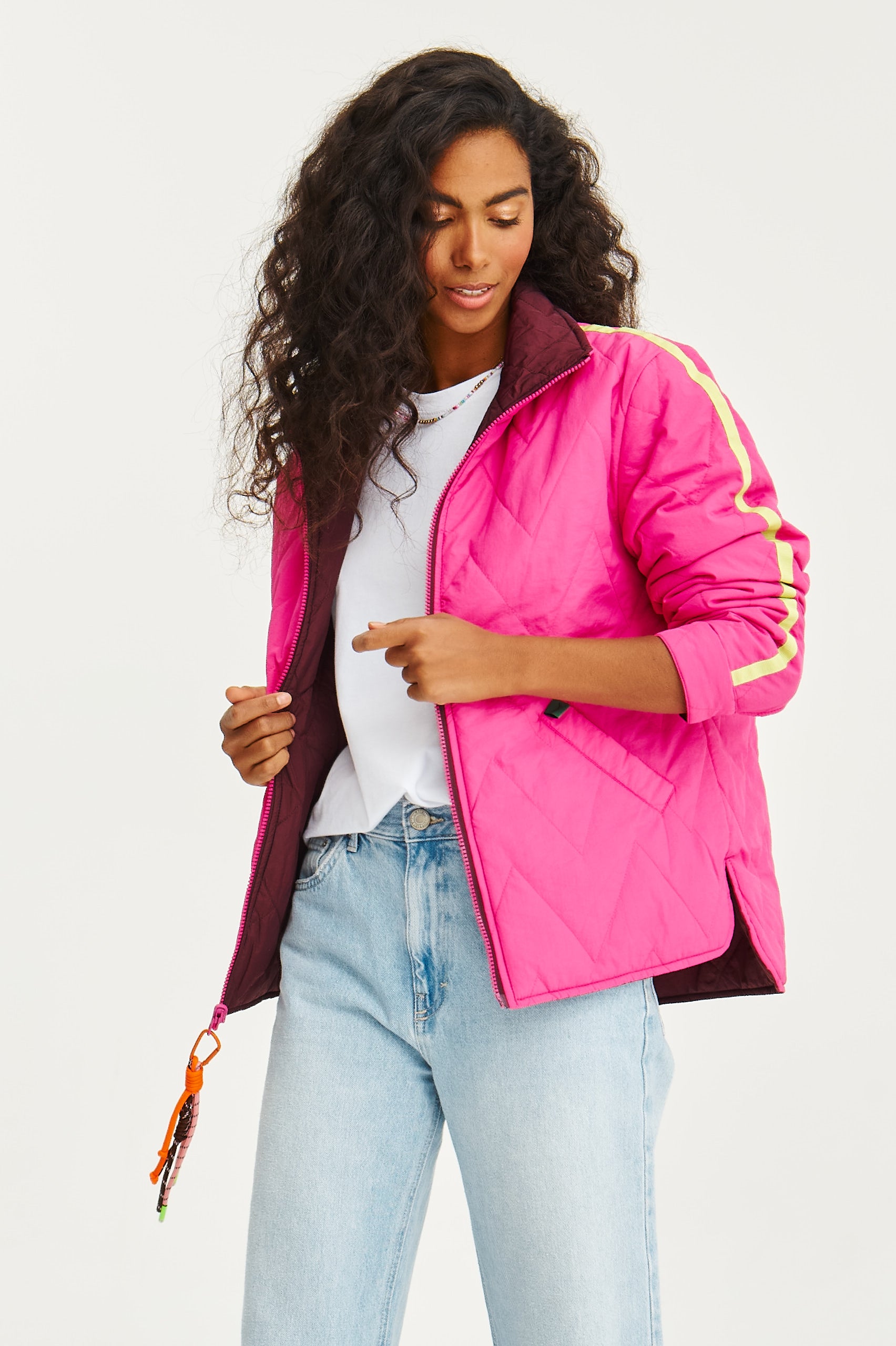 Kurtka dwustronna Poppy Punkberry to eksplozja koloru i charakteru – dla tych, które nie boją się wyróżniać. Z jednej strony intensywny róż z geometrycznym pikowaniem i limonkowym akcentem, z drugiej – głęboki burgund z różowymi detalami. Dwie twarze jednej kurtki, które pozwolą Ci zmieniać styl w zależności od nastroju – bez kompromisów.