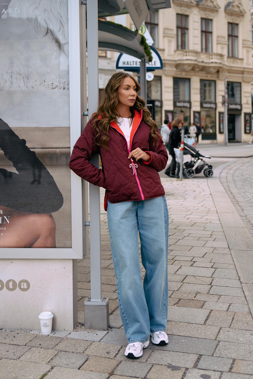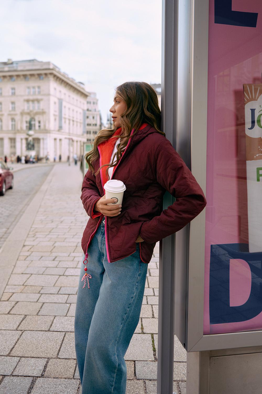 Model pozwala na szybkie dopasowanie się do nastroju lub stylizacji – wystarczy jeden ruch, by zamienić klasyczną głębię w mocny kolor lub odwrotnie. Czerwony wariant idealnie sprawdzi się w sportowych zestawach i doda charakteru każdemu jesiennemu lookowi, natomiast wersja śliwkowa pięknie podkreśli casualowe stylizacje z jeansami lub sukienką. Kurtka posiada wygodne kieszenie na obu stronach, zapięcie na suwak oraz kaptur, który ochroni przed chłodem.