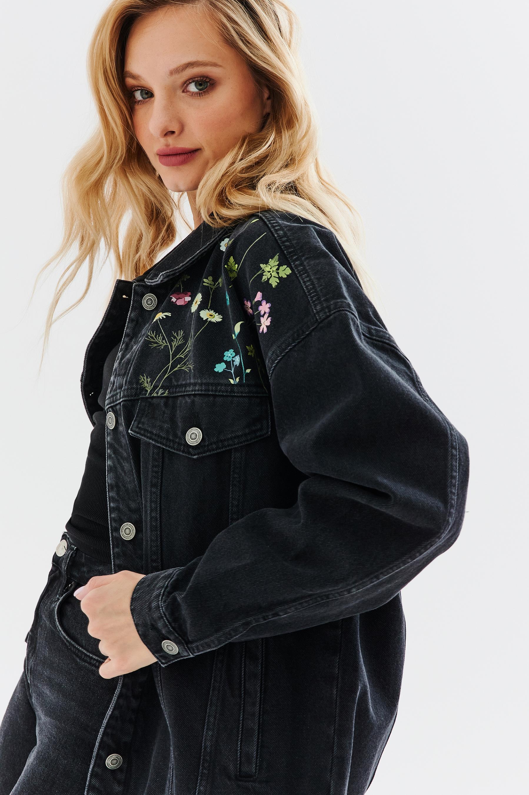 Kurtka jeansowa Soul Full of Sunshine to klasyczna kurtka na wiosnę i lato z romantycznym sznytem. Czarna kurtka jeansowa wzbogacona została o delikatne kwiaty umiejscowione w górnej przedniej części i na plecach kurtki. Tam też znajduje się napis „Soul Full of Sunshine”. Dzięki tym zabiegom klasyczna jeansowa kurtka zyskała nowy, kobiecy wymiar.