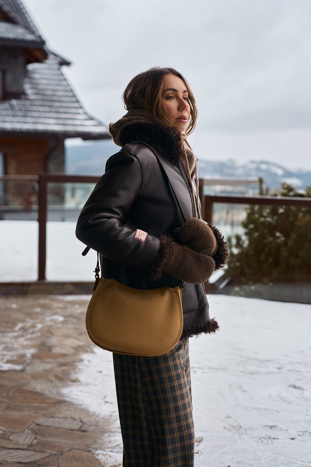 Kurtka dwustronna Fluffy Mocha Moonrise to idealny balans między stylem comfy a miejską elegancją. Wysoka stójka chroni przed wiatrem, a luźny krój zapewnia swobodę ruchów. Kontrastujące wstawki na ramionach i mankietach dodają jej charakteru i przełamują pluszową fakturę.