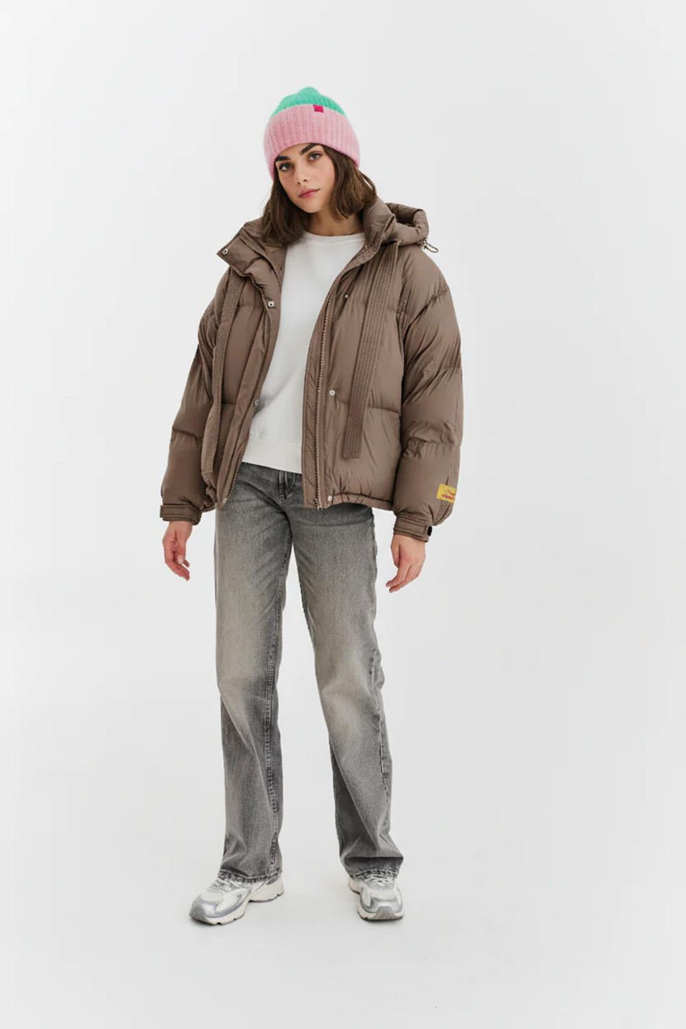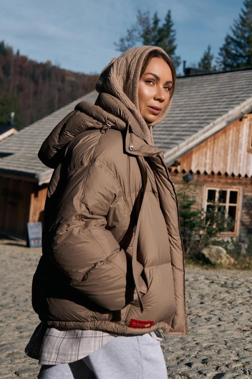 Kurtka puchowa Umbria Softwood to definicja zimowego komfortu w modnym wydaniu. Jej obszerny krój z dużym kapturem zapewnia ciepło i wygodę, a staranne wykonanie i detale, jak ozdobne pikowanie, świadczą o wysokiej jakości. Kolor "mocca" jest nie tylko piękny, ale też bardzo praktyczny.