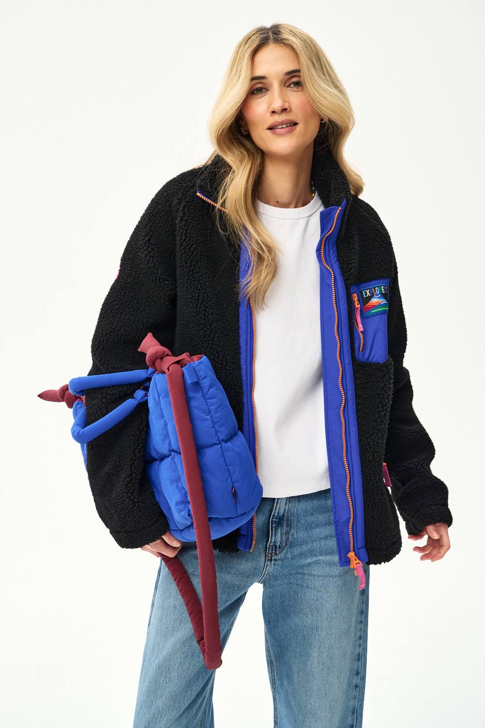 Kurtka Teddy Adrenaline udowadnia, że przytulny materiał może wyglądać bardzo dynamicznie. Czarna baza została zestawiona z intensywnie niebieskim dołem na plecach i neonowymi przeszyciami. To model, który doda Ci energii do działania podczas jesiennych treningów na świeżym powietrzu.
