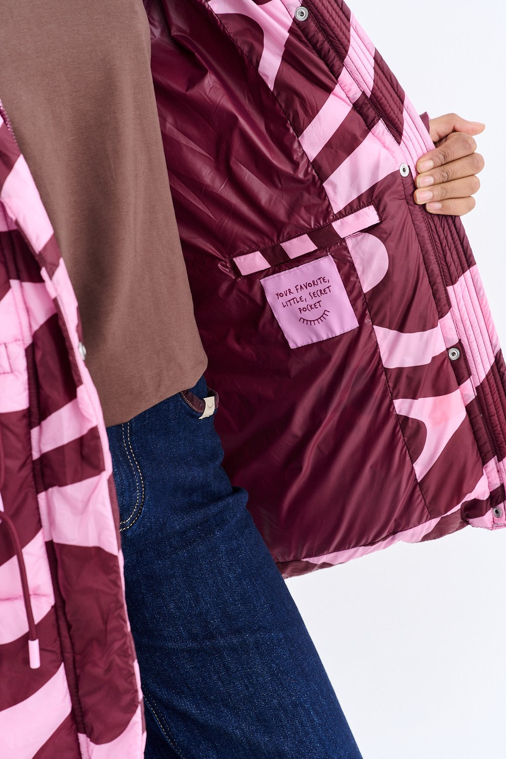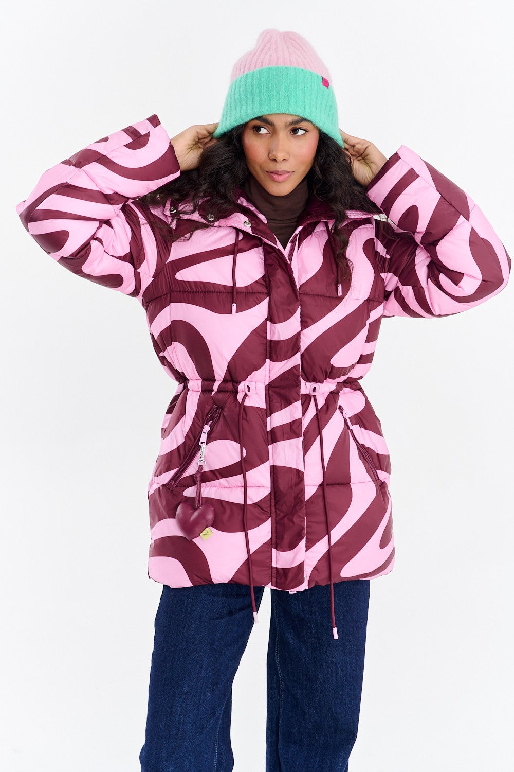 Kurtka zimowa Davos Wild Berry to propozycja dla odważnych kobiet, które kochają wyraziste wzory. Ten sam sprawdzony, dopasowany krój, tym razem w odsłonie "Wild Berry" - energetycznym połączeniu odcieni jasnego różu i żurawiny w abstrakcyjnym wzorze.