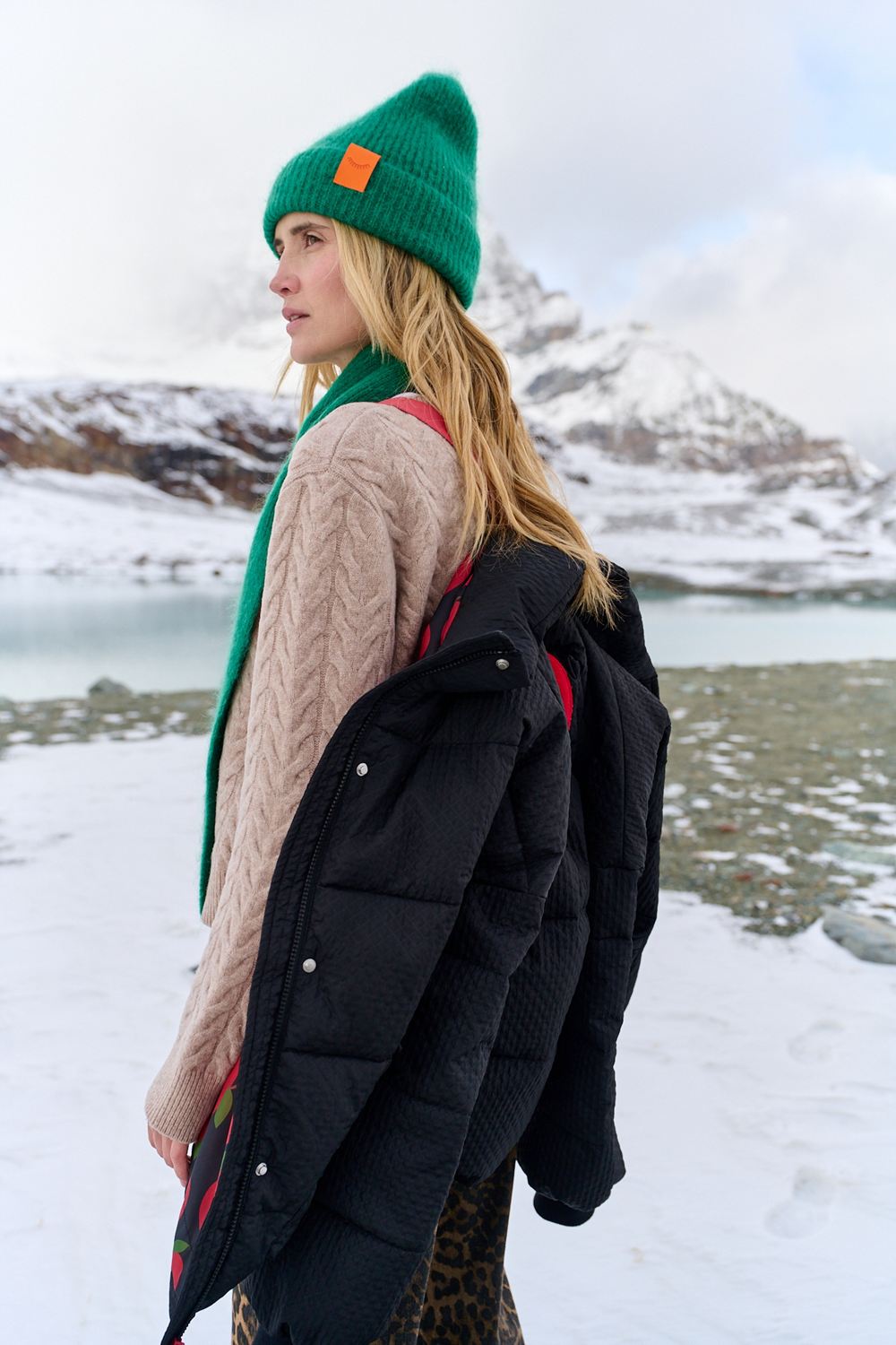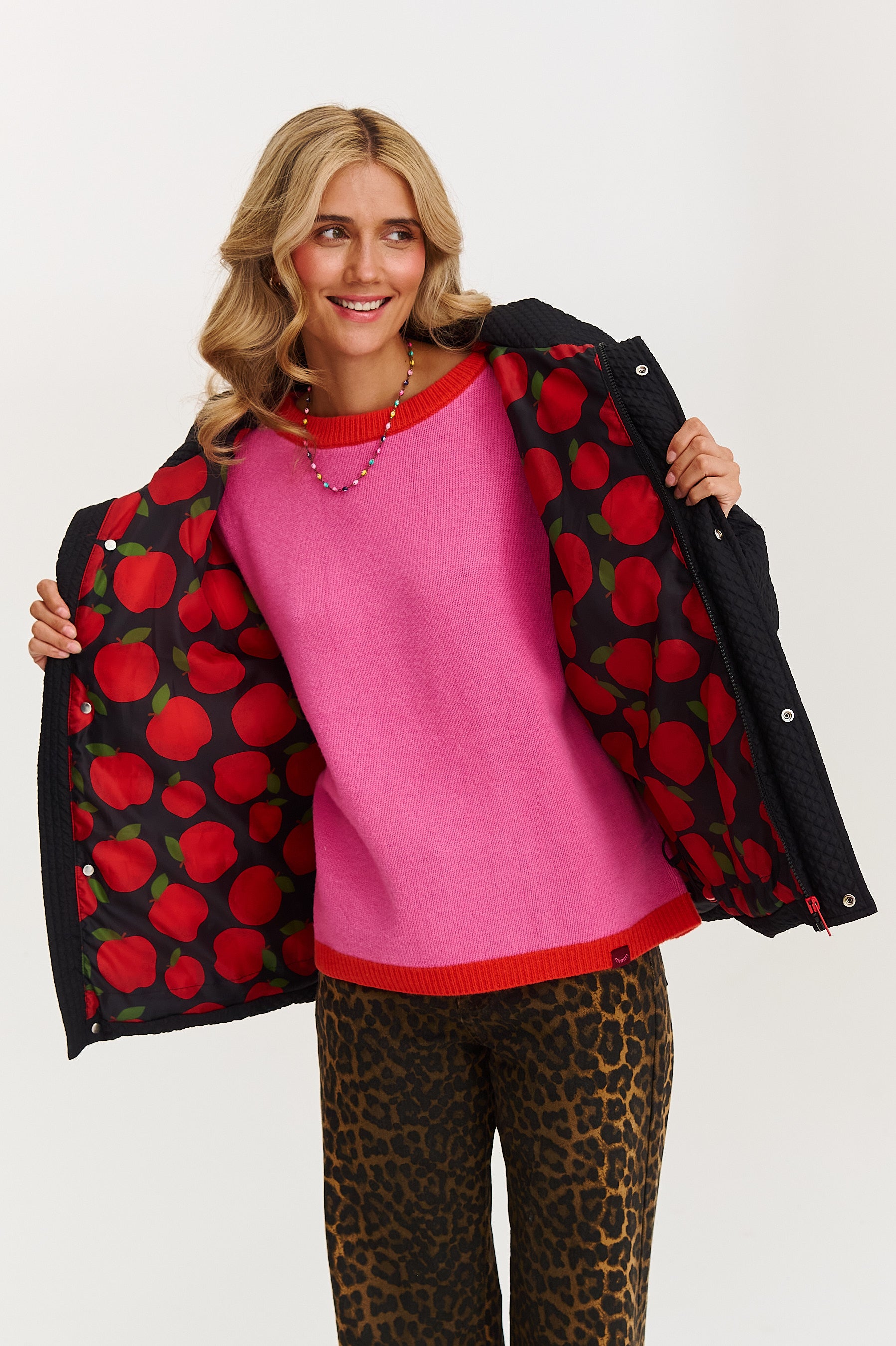 Kurtka zimowa Denali Destiny Bites to klasyczny krój bomberki w zupełnie nowej odsłonie. Wyjątkowa, tłoczona faktura materiału przypominająca gofra wyróżnia ją spośród innych kurtek. Wewnętrzna podszewka w jabłka i hasło na plecach to detale, które opowiadają historię i dodają jej bajkowego uroku.