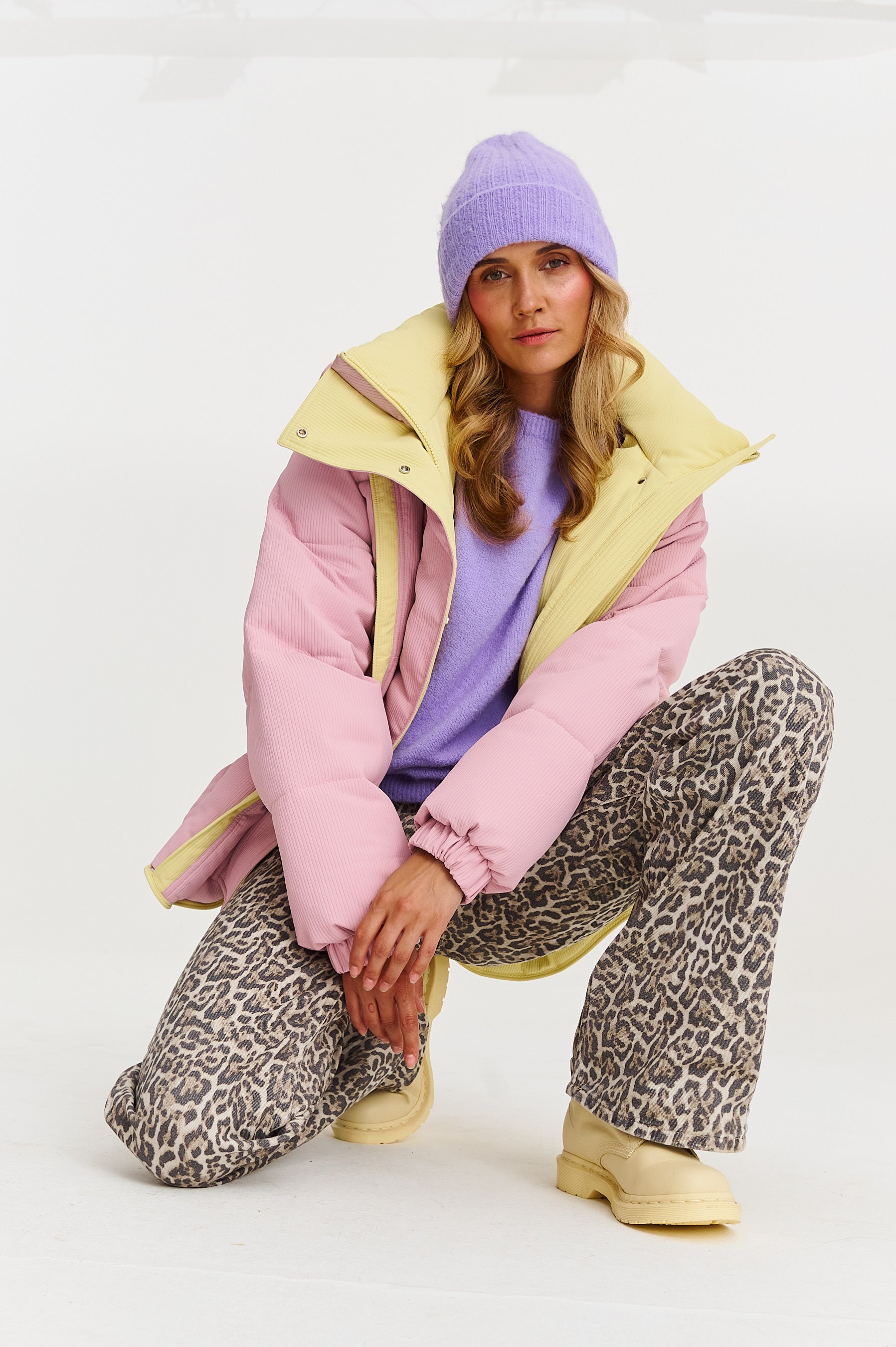 Kurtka zimowa Himalaya Cottoncore to urocza i stylowa propozycja na chłodne miesiące. Jej luźny, oversizowy krój zapewnia maksymalny komfort, a połączenie pastelowego różu z kremowymi wstawkami tworzy słodką i spójną całość. Ozdobna naszywka na plecach dodaje jej unikalnego charakteru.