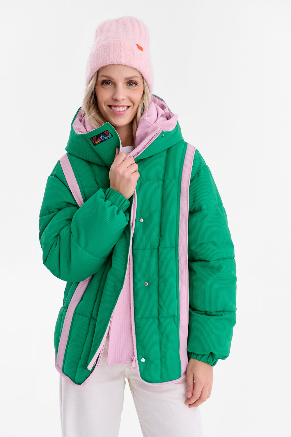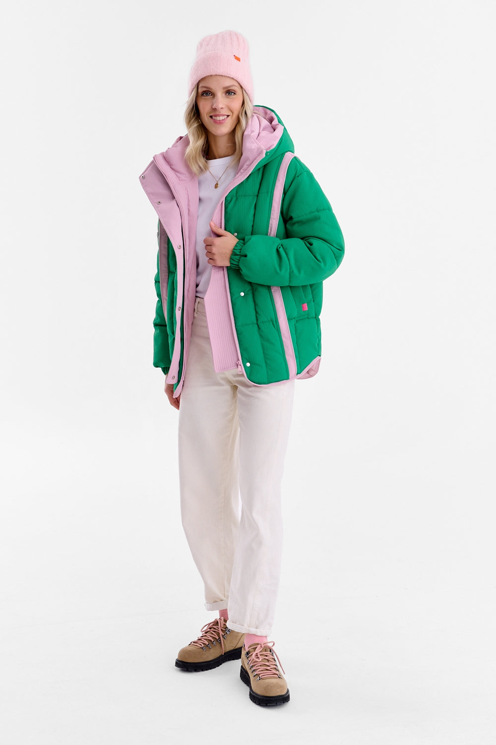 Model Himalaya został zaprojektowany z myślą o kobietach, które cenią sobie oryginalny design. Pionowe pikowania optycznie wysmuklają sylwetkę, a wyrazisty zielony kolor i różowe akcenty tworzą niezapomniane połączenie. Noś ją do ulubionych jeansów lub sportowych legginsów i twórz stylizacje, które przyciągają wzrok.