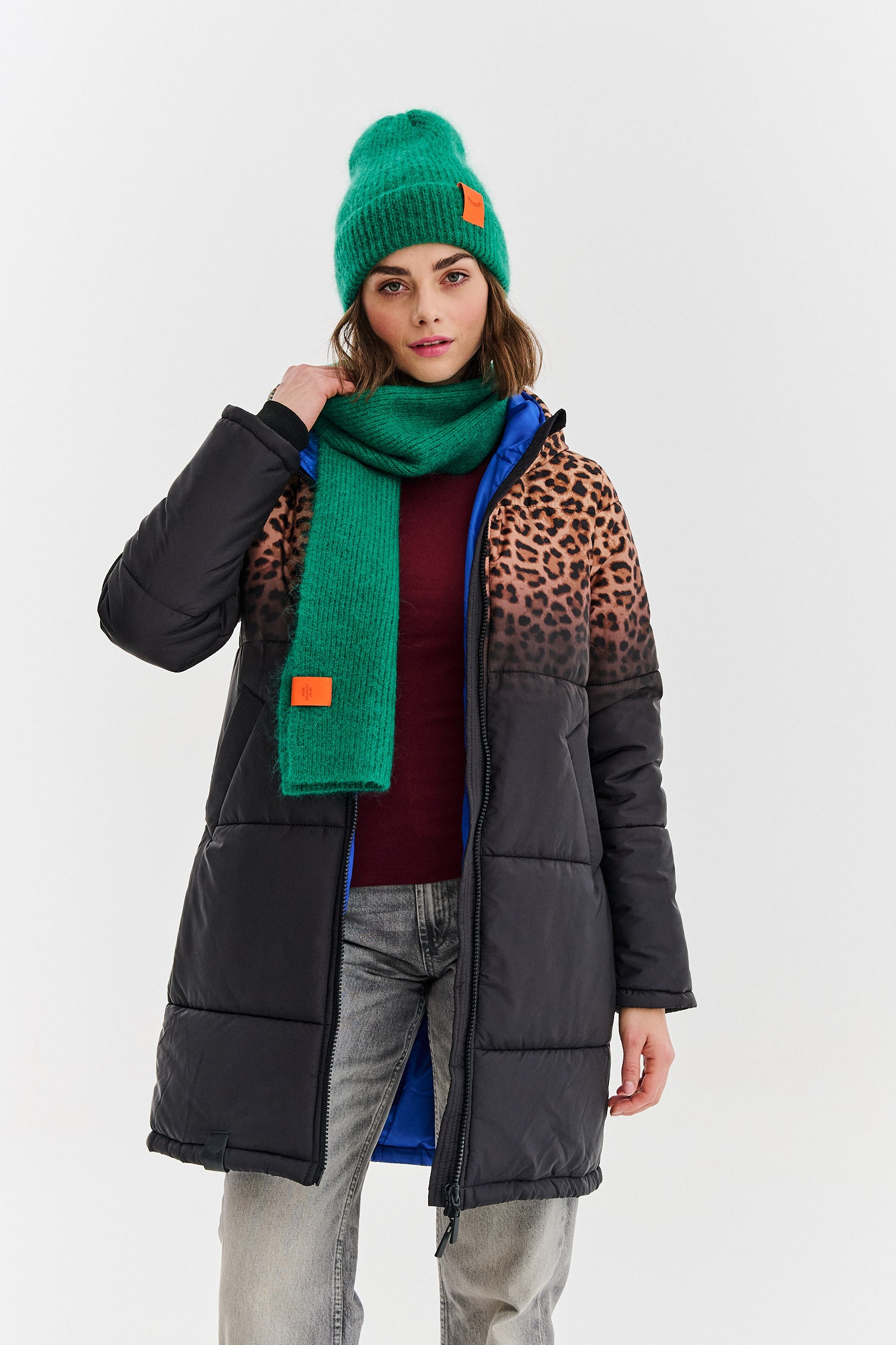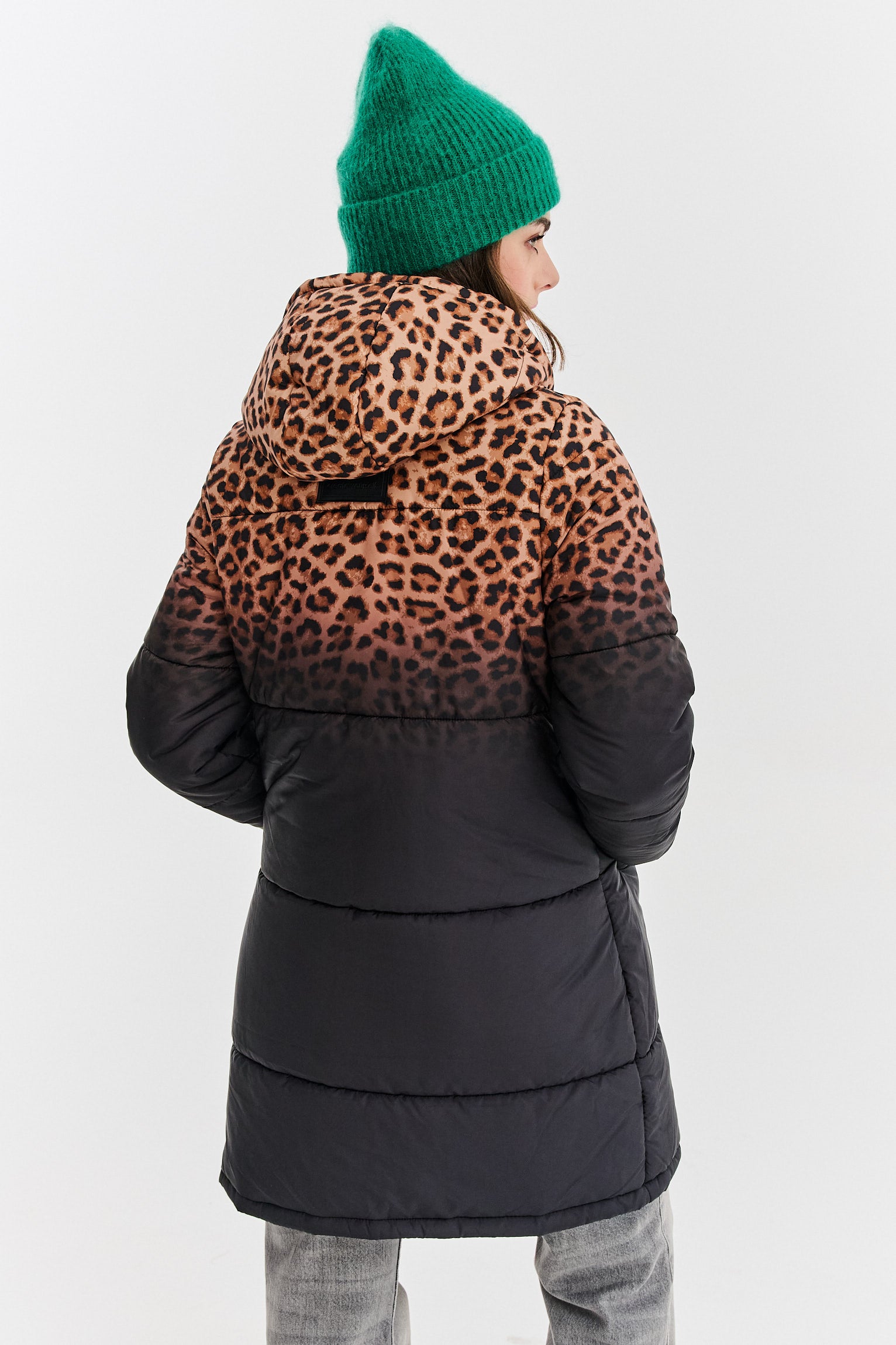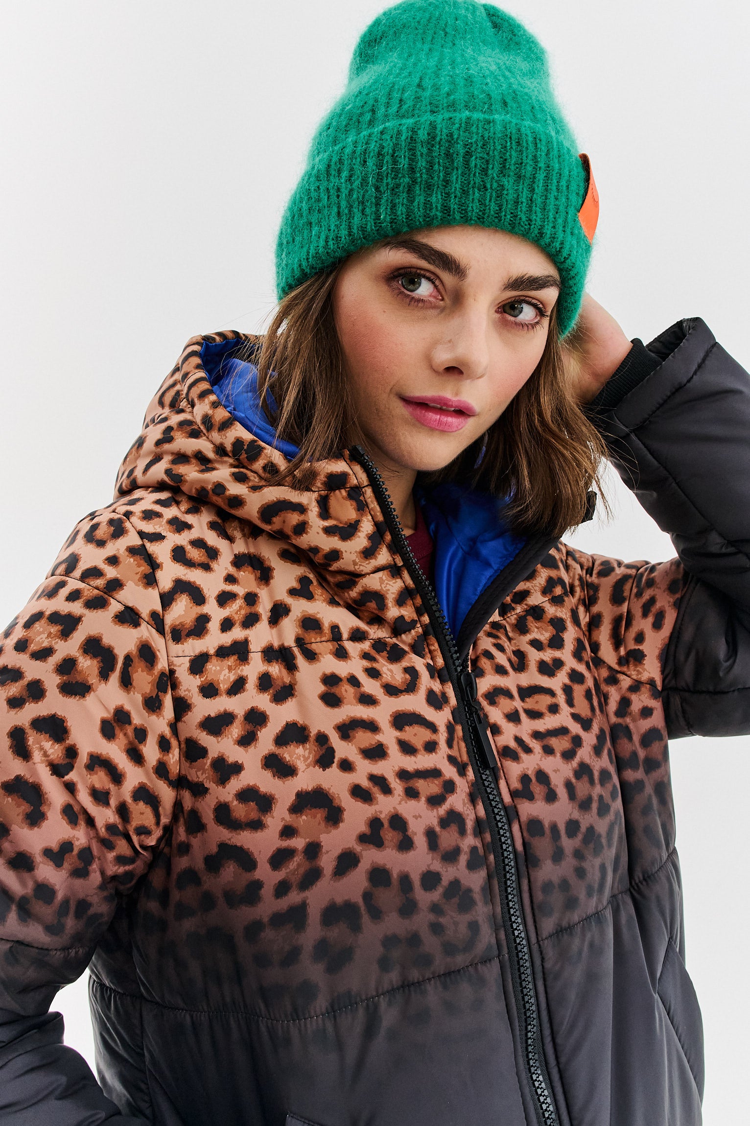 Kurtka zimowa Oslo Snowcat to gwarancja ciepła i stylu w najzimniejsze dni. Długi fason, obszerny kaptur z kontrastową, niebieską podszewką i puchowe wypełnienie skutecznie chronią przed mrozem. Wzór ombre w cętki to absolutny hit, który wyróżni Cię na ulicy.