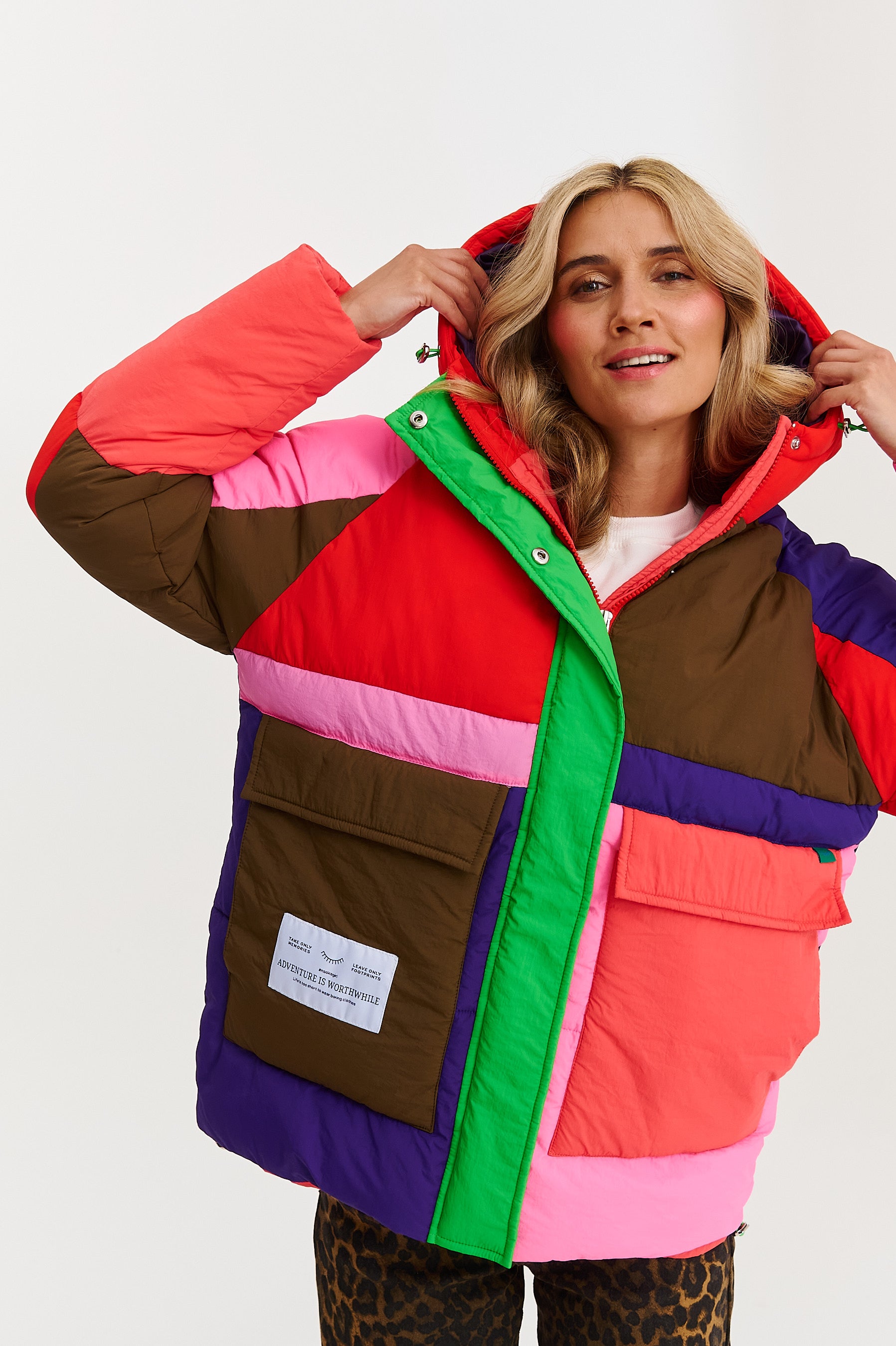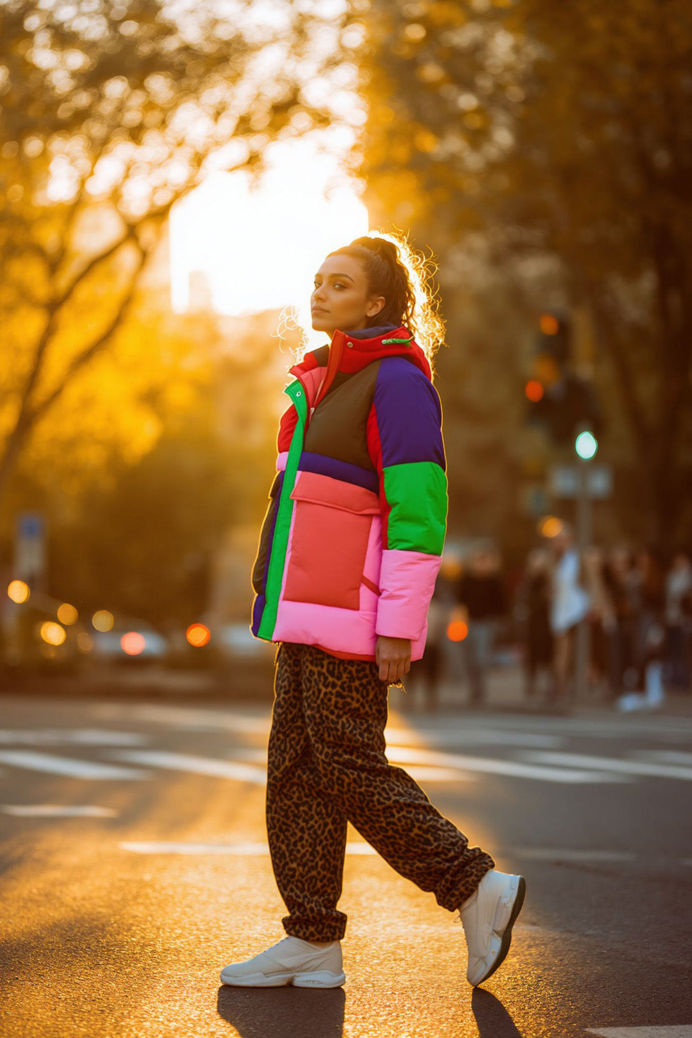 Kurtka Tromso Neon Hug to manifest radości i odwagi w modzie. Projekt oparty na technice color blocking łączy ze sobą intensywne odcienie czerwieni, różu, zieleni i fioletu, tworząc niepowtarzalną, energetyczną mozaikę. To więcej niż kurtka – to Twój sposób na wyrażenie siebie.