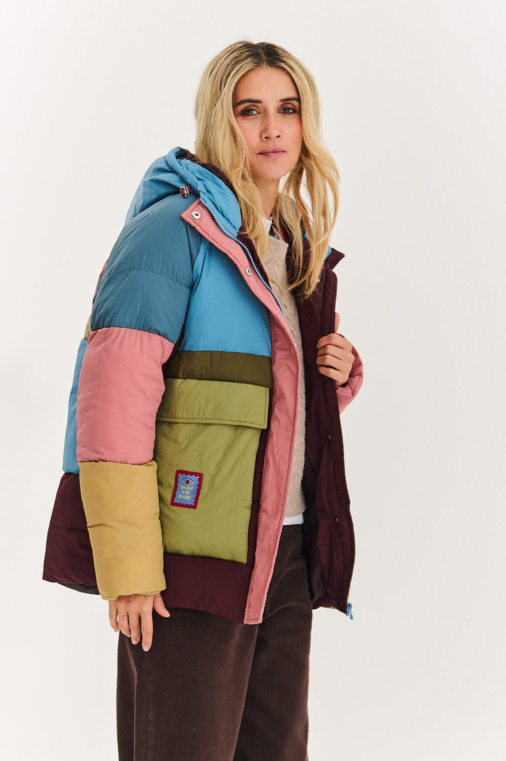 Kurtka zimowa Tromso Sour Candy to manifest radości i zabawy modą. Zainspirowana stylem color blocking, łączy w sobie odcienie niebieskiego, zieleni, różu i bordo, tworząc odważną i nowoczesną kompozycję. To propozycja dla tych, którzy nie boją się wyróżnić z tłumu.