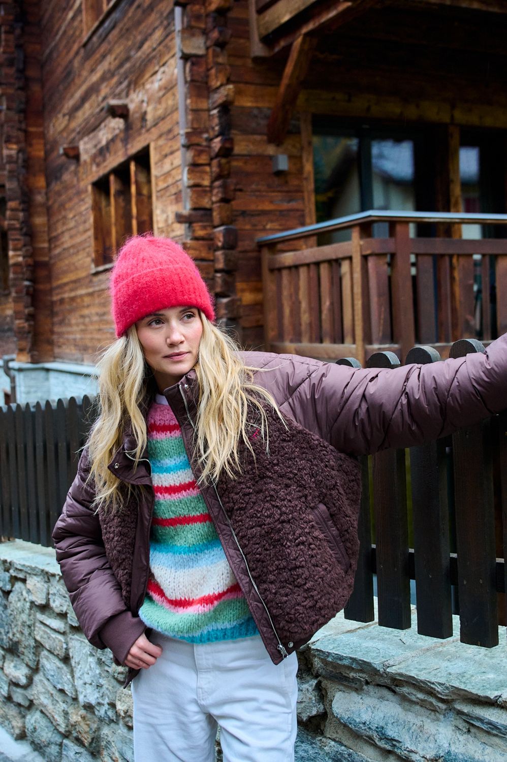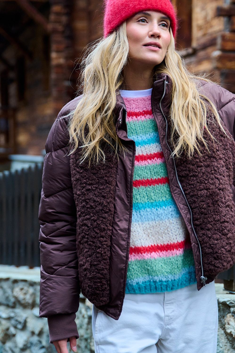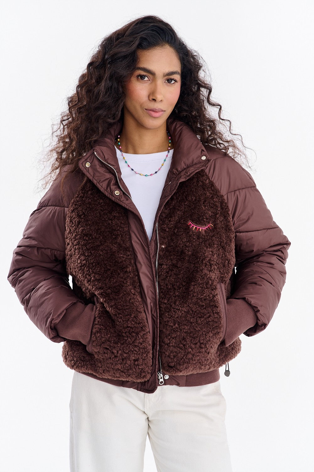 Kurtka zimowa Wooden Whisper to idealny balans między przytulnością a nowoczesnym designem. Krótki krój typu bomber z wysokim kołnierzem otuli Cię ciepłem, a połączenie różnych faktur materiałów sprawia, że kurtka jest ciekawa i oryginalna. To model dla kobiet ceniących komfort i niebanalny styl.