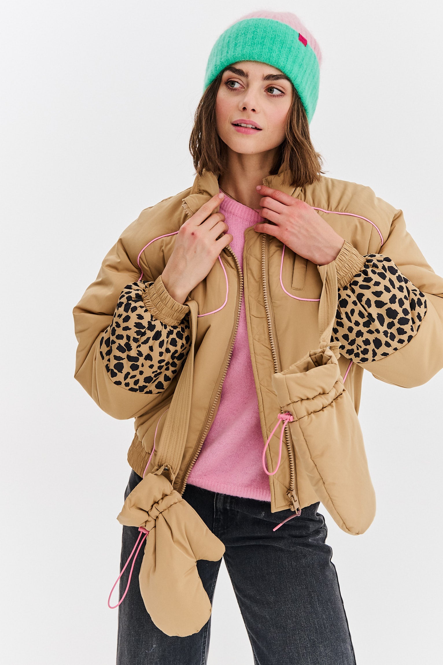 Kurtka zimowa z rękawiczkami Into the Flow to stylowy i niezwykle praktyczny zestaw na zimę. Krótki, wygodny krój bomberki idealnie pasuje do miejskich stylizacji. Wysokiej jakości materiały zapewniają ciepło, a detale takie jak kontrastowy zamek i zwierzęcy print dodają jej charakteru.