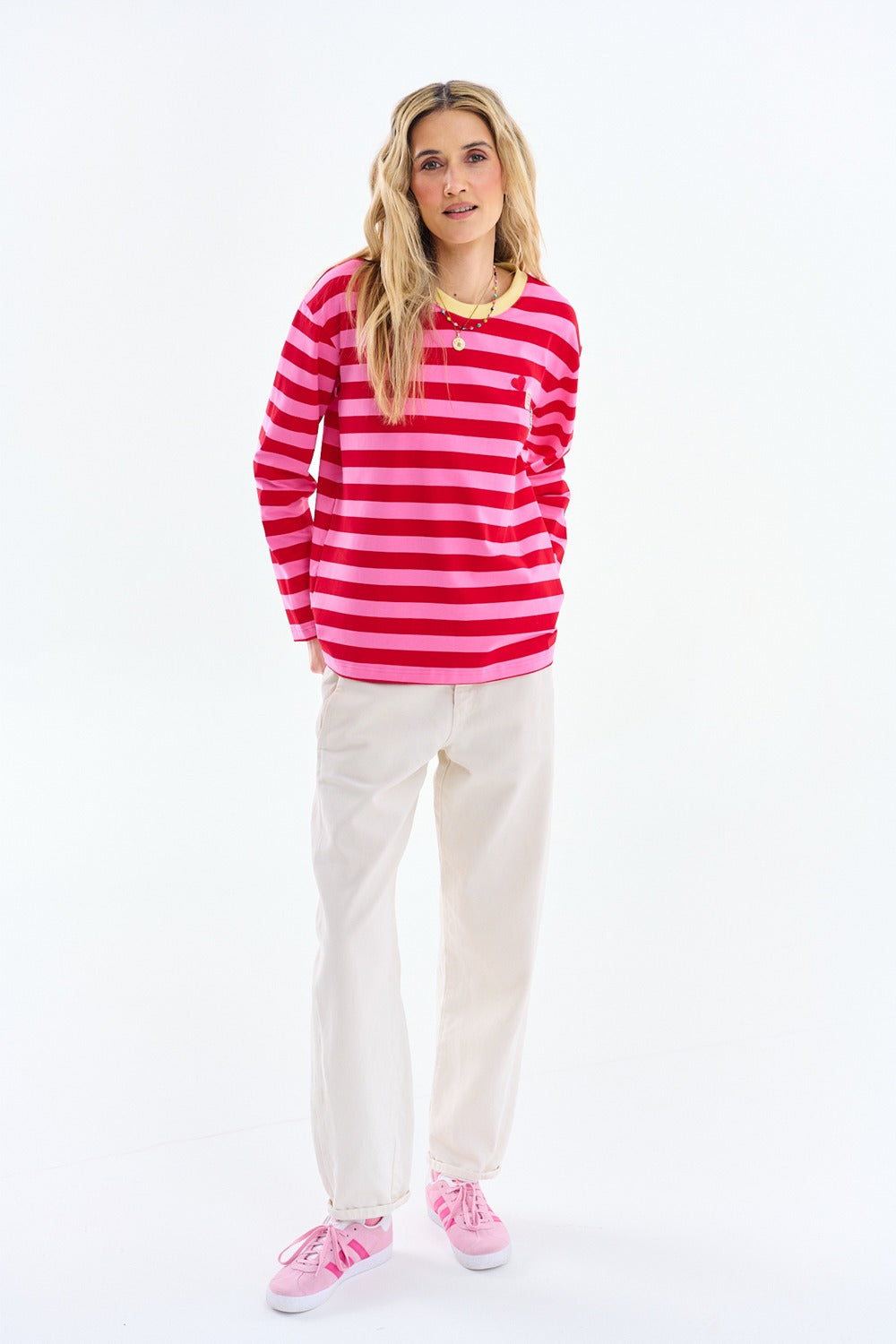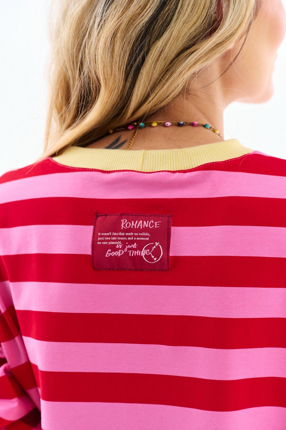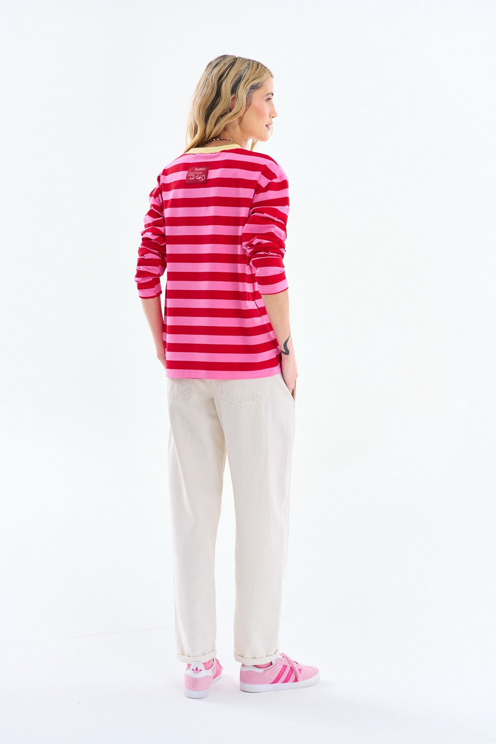 Longsleeve Sweet & Sour to klasyczny fason w nowej, odważnej kolorystyce. Połączenie soczystej czerwieni i pastelowego różu tworzy rytmiczny wzór, który idealnie wpisuje się w miejskie trendy.