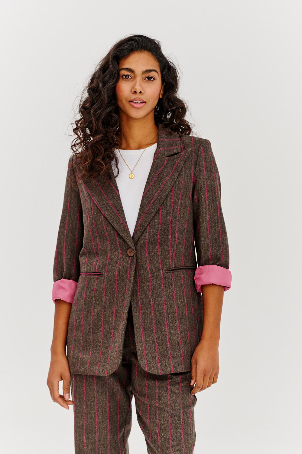 Brązowa marynarka w jodełkę - ponadczasowa propozycja