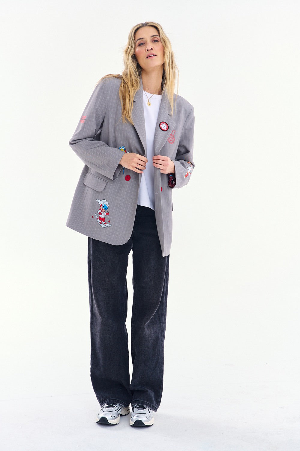 Dzięki połączeniu tradycyjnego krawiectwa z popkulturowym twistem, ta marynarka staje się unikatowym elementem lifestyle'owej garderoby. Wyraziste nadruki na plecach i rękawach nie pozwolą Ci zginąć w tłumie.