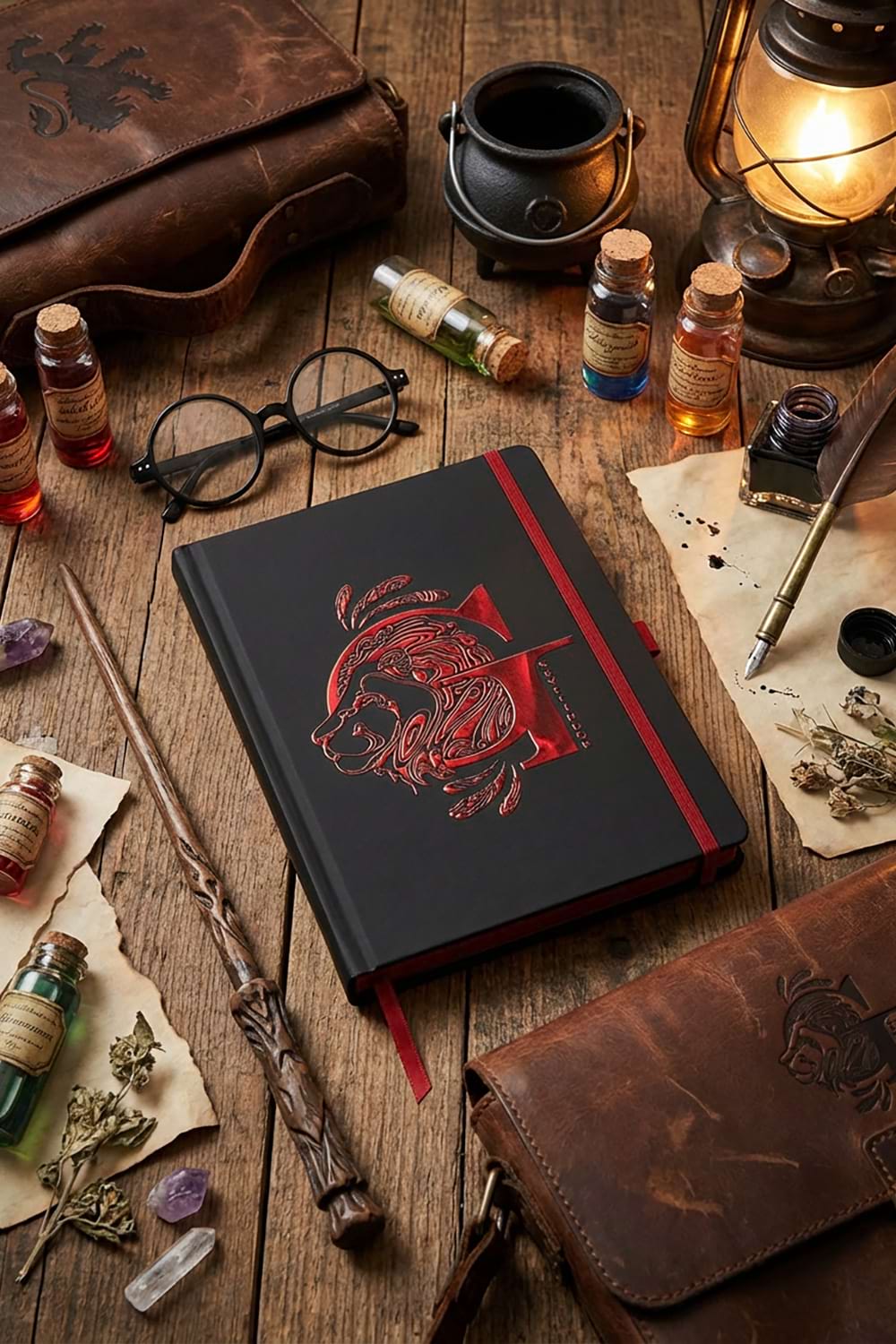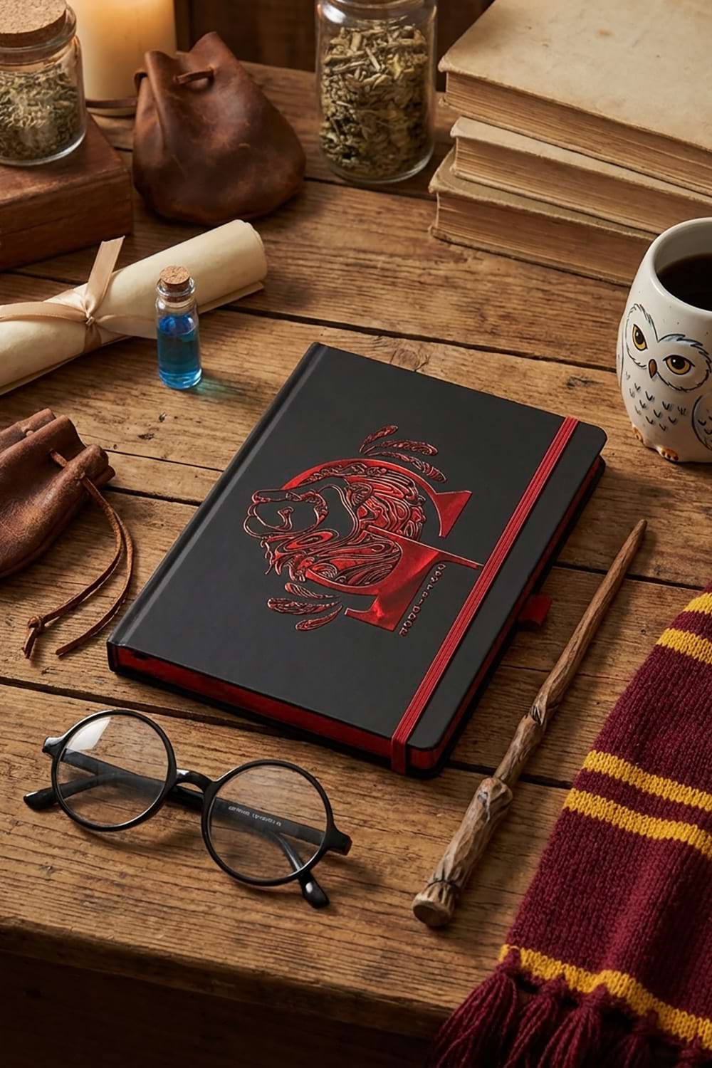 Solidna, twarda oprawa i czerwona gumka zamykająca dbają o bezpieczeństwo Twoich zapisków – czy to notatek z zaklęć, czy planów na kolejną wielką przygodę. Notes posiada również praktyczną pętelkę na pióro lub różdżkę. To luksusowy gadżet, który doda magii każdemu biurku i sprawi, że nawet mugolskie obowiązki nabiorą nieco hogwarckiego klimatu.