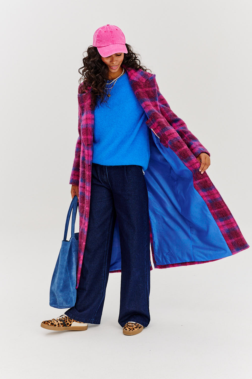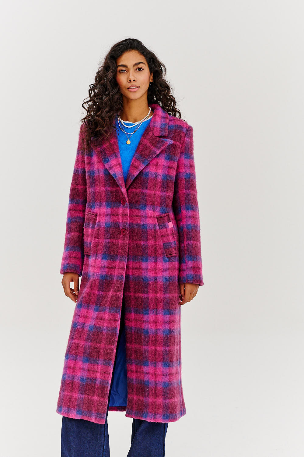 Nowoczesny akcent w klasycznej formie – płaszcz Modern Touch to model, który redefiniuje ponadczasowy styl. Różowo-niebieska krata sprawia, że ten model przyciąga spojrzenia, dodając każdej stylizacji odrobiny wyrazistości i świeżości. Długi fason, elegancki kołnierz oraz precyzyjnie skrojony krój sprawiają, że płaszcz pięknie podkreśla sylwetkę.