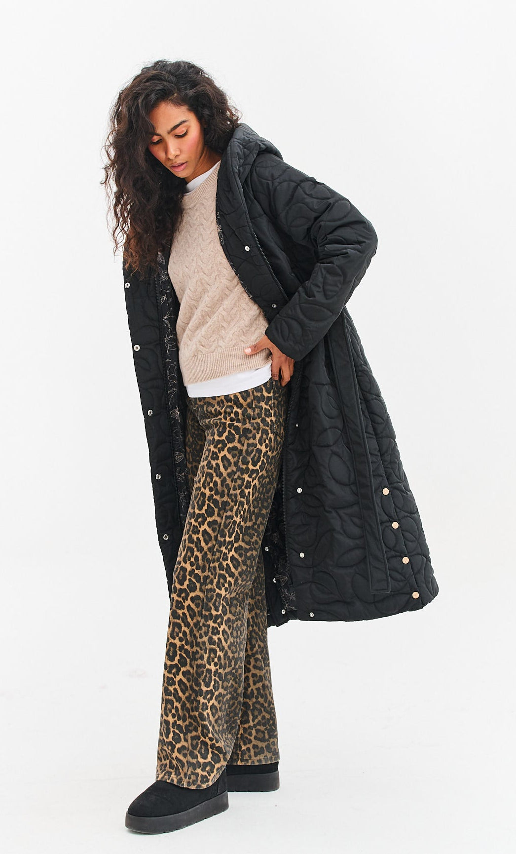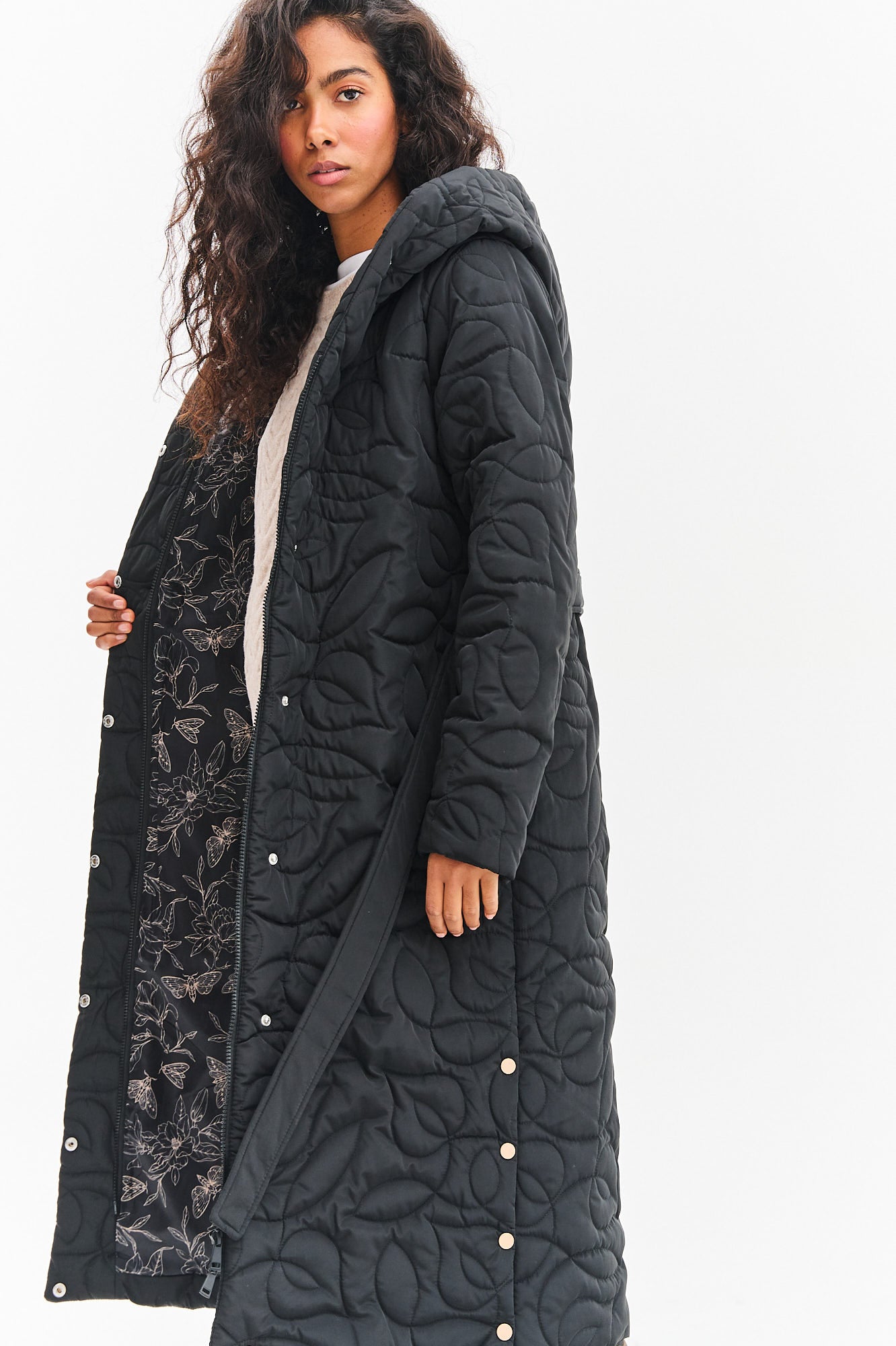 Płaszcz pikowany Anabelle Noir to propozycja dla kobiety, która ceni sobie wyrafinowaną prostotę. Długi, pikowany fason nie tylko pięknie się prezentuje, ale także skutecznie chroni przed zimnem. Szeroki kołnierz można ułożyć na wiele sposobów, a ozdobne napy dodają całości charakteru.