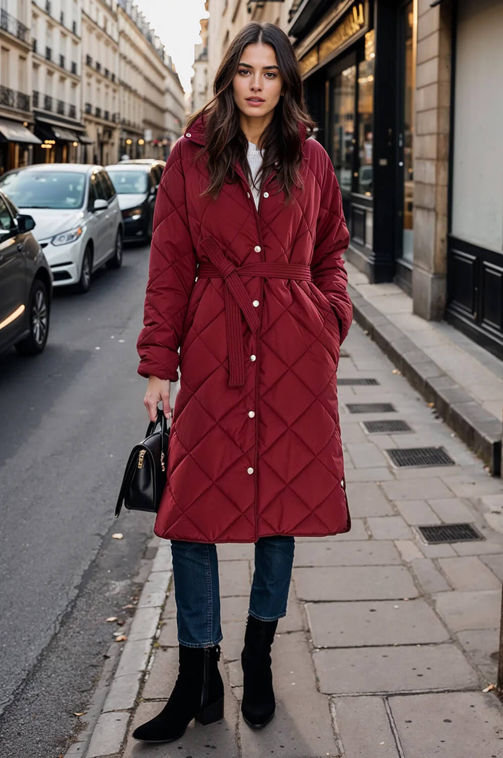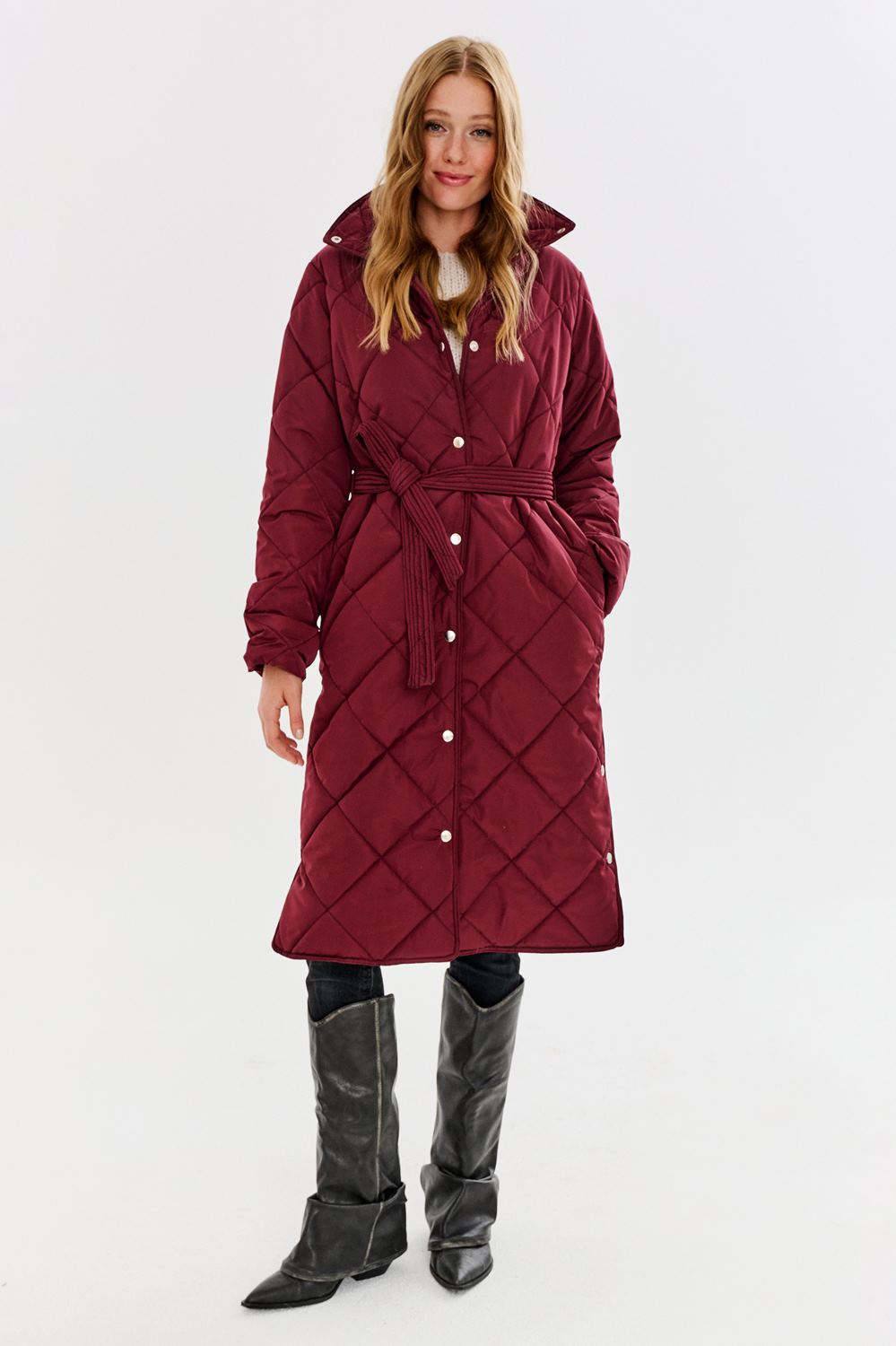 Pikowany wzór nadaje teksturalności i stylu temu płaszczowi. Pikowanie nie tylko podkreśla jego elegancję, ale również dodaje mu warstwę izolacji termicznej, co sprawia, że świetnie sprawdzi się w chłodniejsze dni.