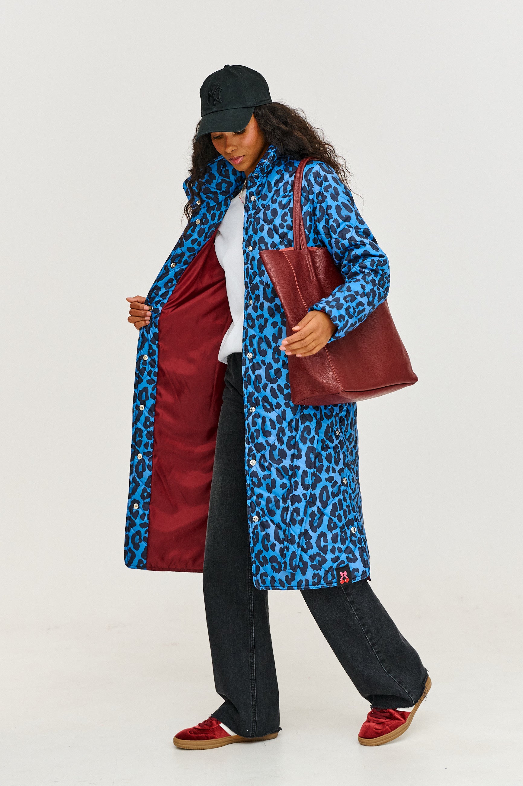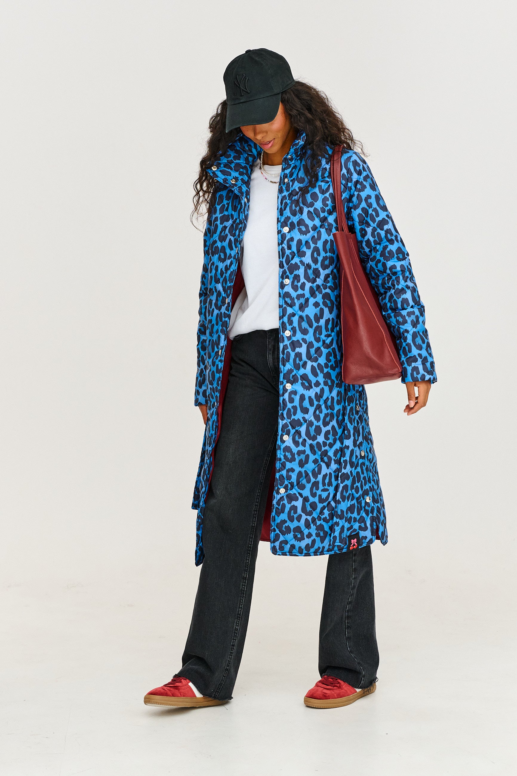 Płaszcz pikowany Meowtropolitan to model, który łączy nowoczesną elegancję z pazurem. Niebieski wzór leopard print przyciąga spojrzenia i nadaje charakteru każdej stylizacji, a klasyczny pikowany fason zapewnia komfort i ciepło nawet w chłodniejsze dni. Długi krój, stójka i wiązanie w talii sprawiają, że płaszcz pięknie podkreśla sylwetkę, jednocześnie pozostając wygodnym wyborem na co dzień.