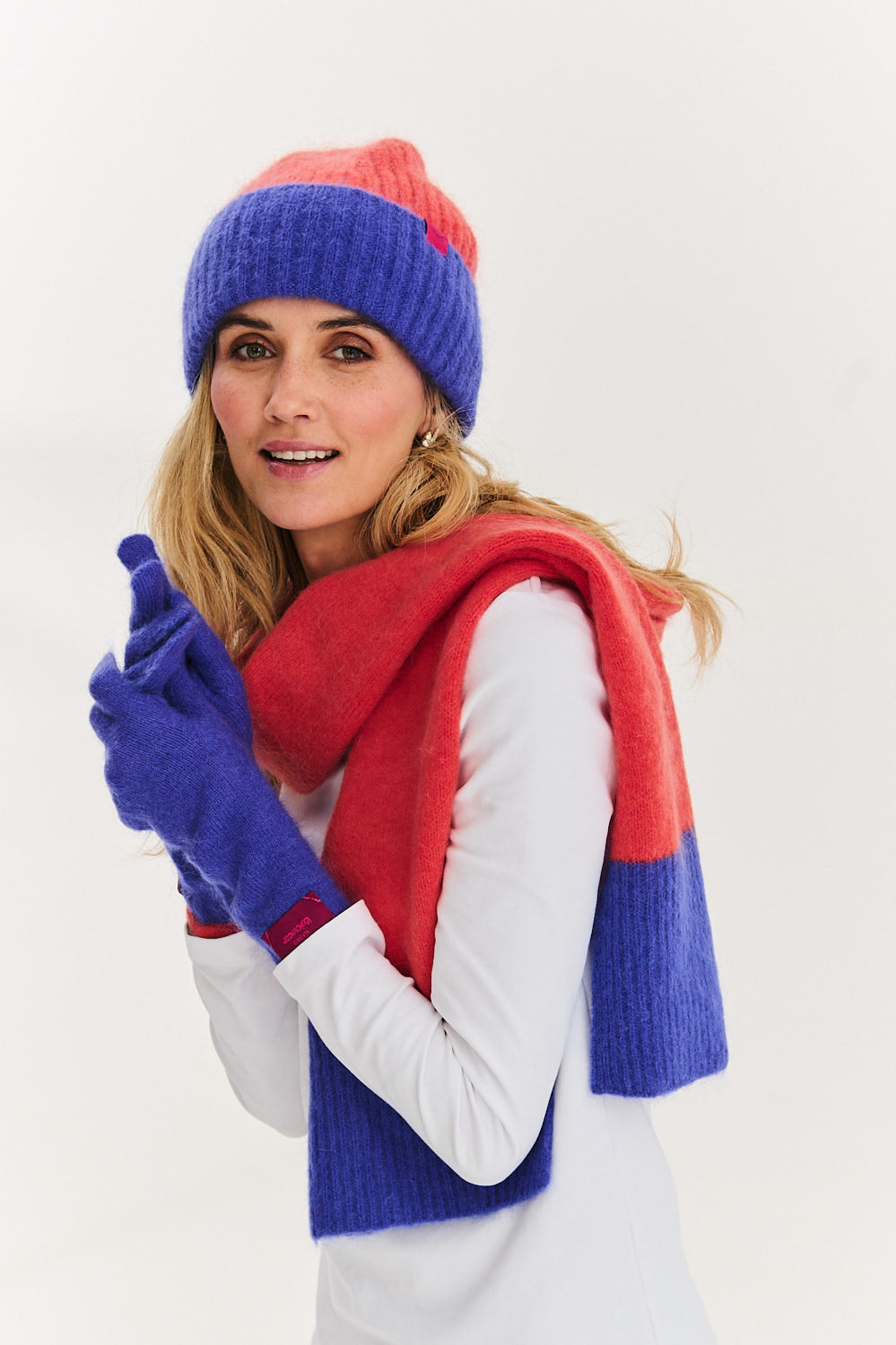 Rękawiczki DuoPuff Ruby Midnight to wyrazisty dodatek dla tych, które lubią bawić się kolorem. To odważne połączenie głównej części w kolorze granatowym z kontrastowym, prążkowanym mankietem w odcieniu czerwieni.