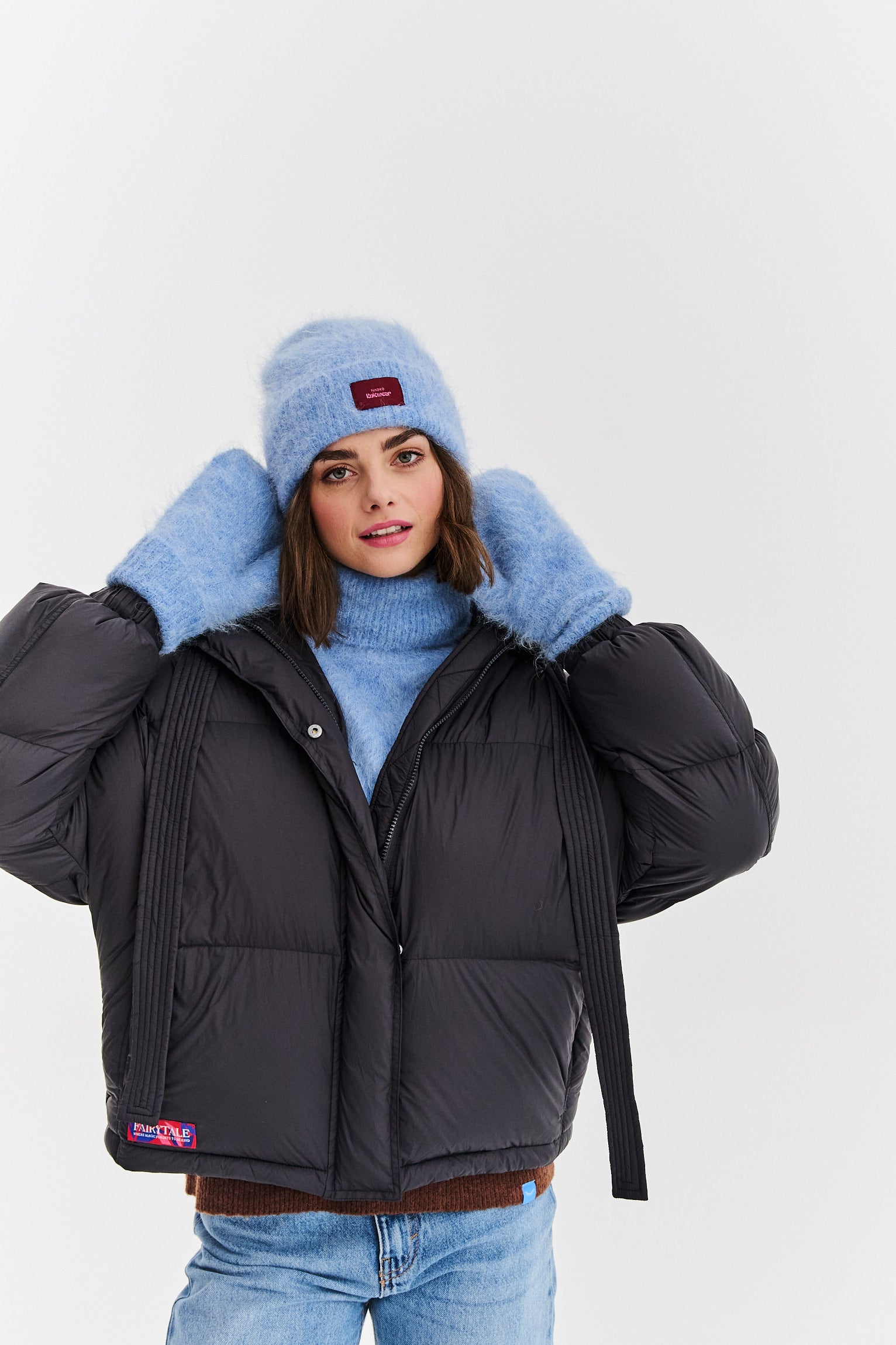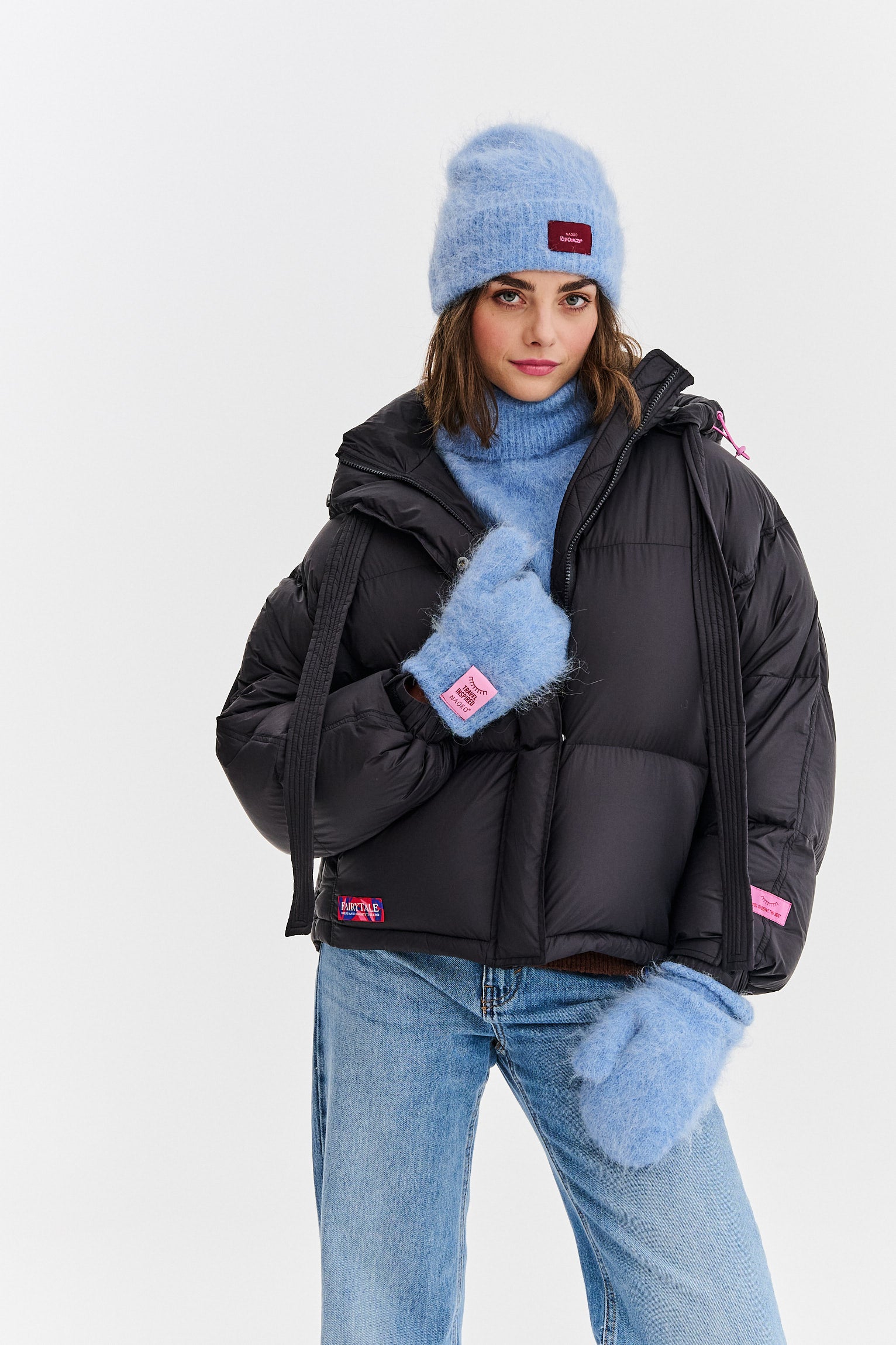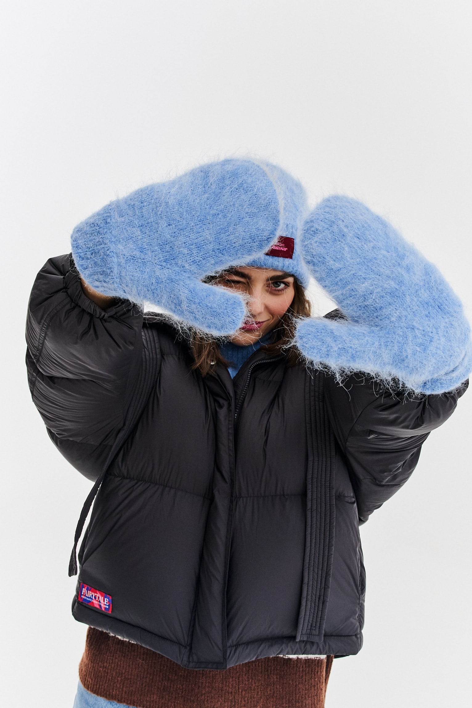 Puszysta faktura materiału i stonowany, błękitny kolor sprawiają, że rękawiczki są nie tylko praktyczne, ale i bardzo stylowe. Stwórz spójny, zimowy total look, dobierając do nich czapkę Huggy Frost i szalik-komin Huggy Frost.