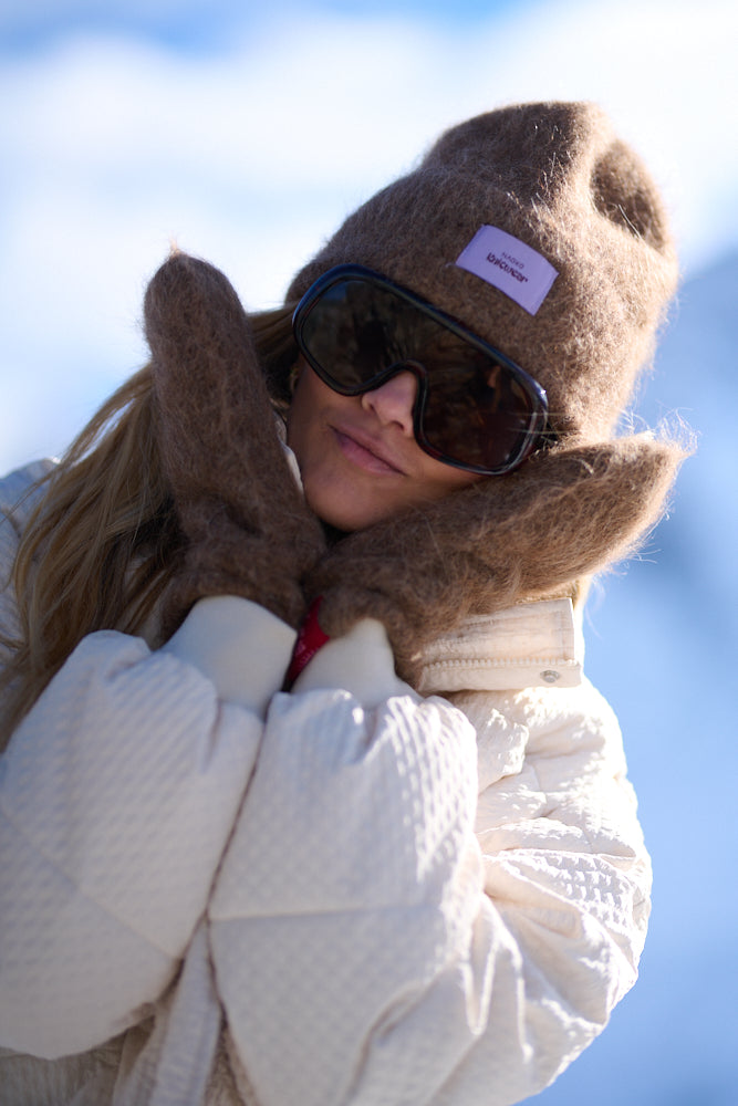 Głęboki odcień brązu "Mocha" jest niezwykle uniwersalny i pasuje do każdej zimowej stylizacji. Rękawiczki tworzą idealny zestaw z czapką oraz szalikiem-kominem z serii Huggy, pozwalając na stworzenie kompletnego i bardzo szykownego looku.