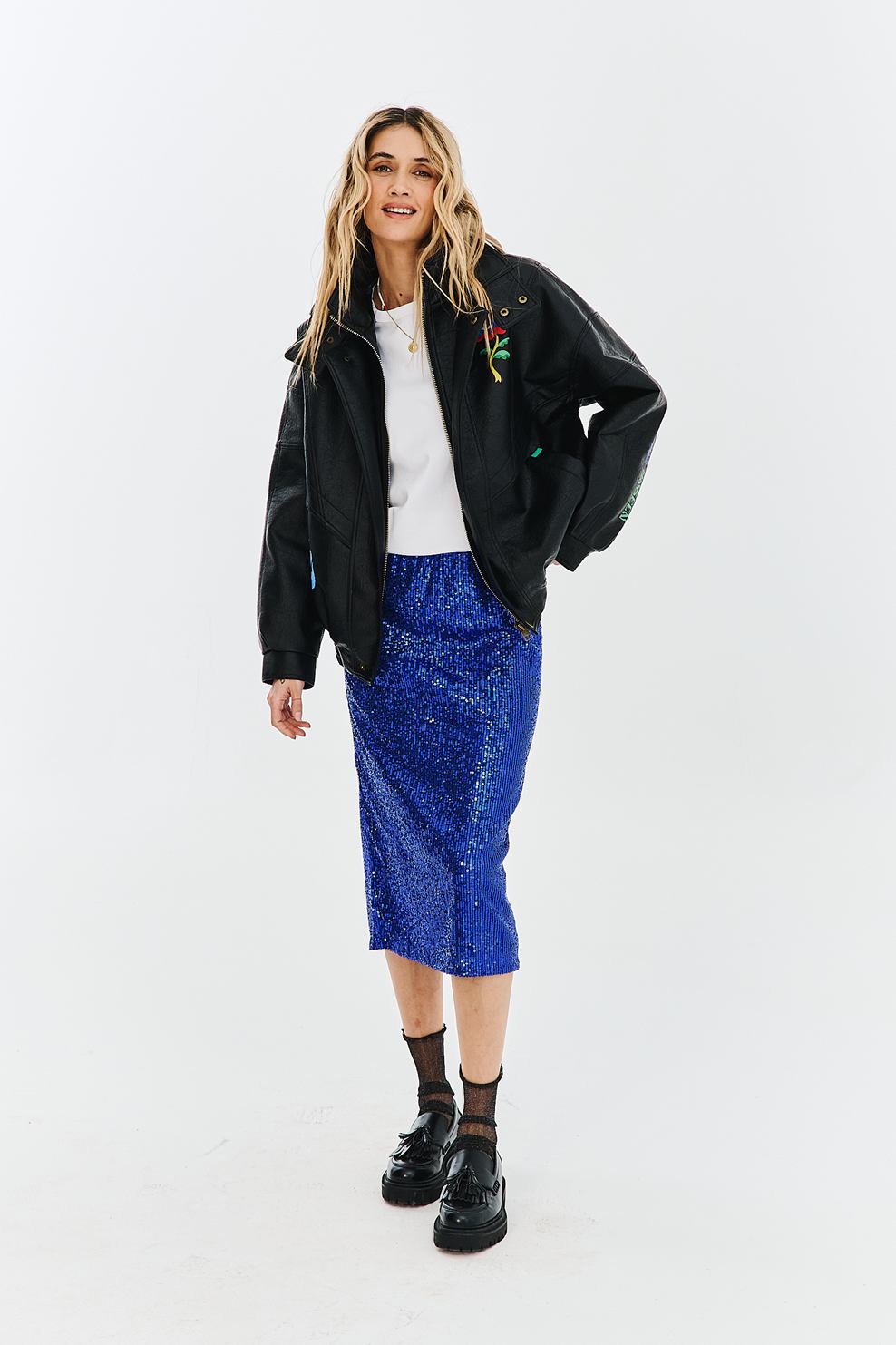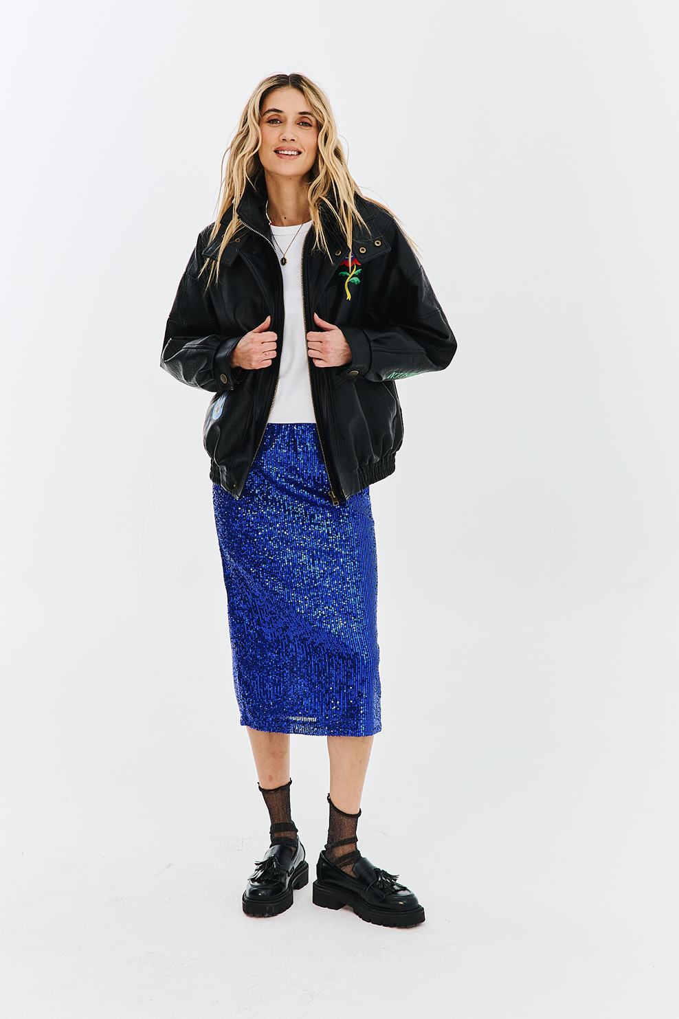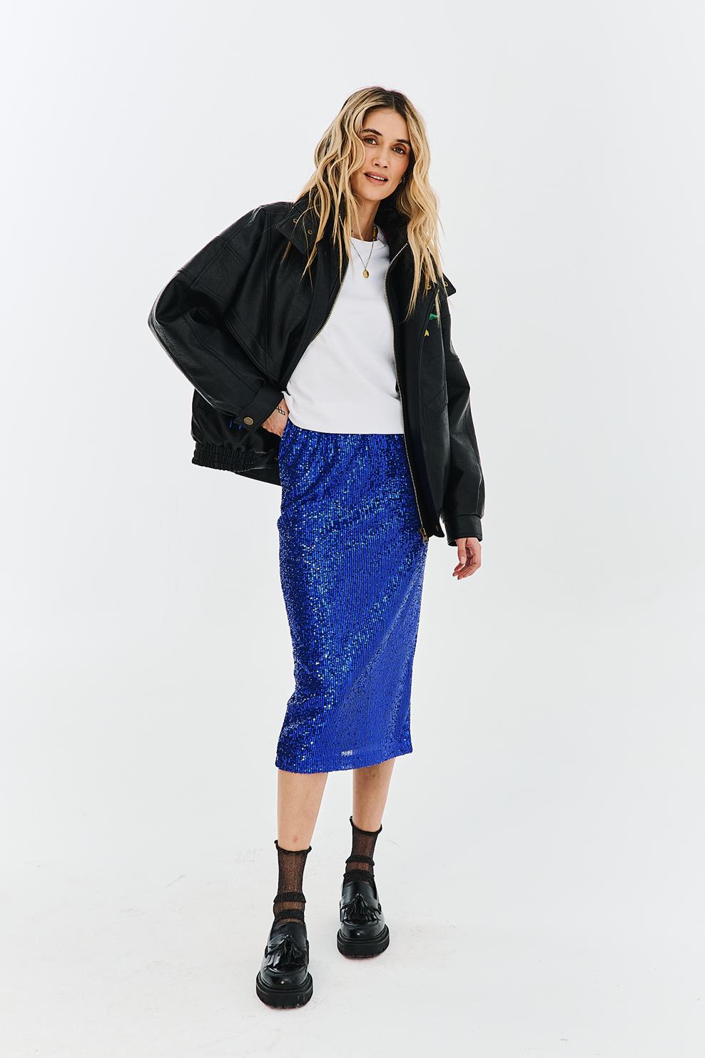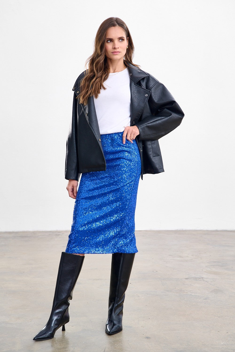 Spódnica cekinowa Dream Control przyciąga wzrok intensywnością barwy. Tysiące mieniących się cekinów w kolorze chabrowym sprawiają, że jest to idealny element garderoby na karnawałowe szaleństwo. Klasyczna długość midi z rozcięciem łączy elegancję z nutą seksapilu.