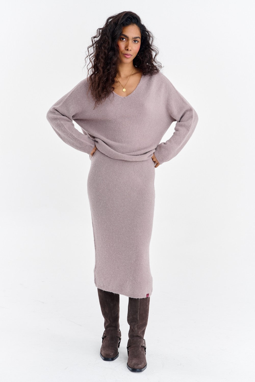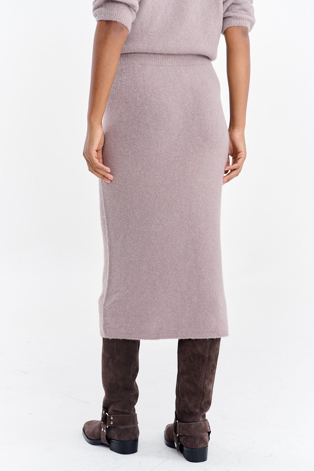 Wysoki stan z szerokim, komfortowym pasem podkreśla talię i zapewnia wygodę przez cały dzień. Długość midi jest elegancka i praktyczna. Noś ją z pasującym swetrem z tej samej dzianiny, by stworzyć wyrafinowany "total look", lub łącz z ulubionymi T-shirtami i marynarkami.
