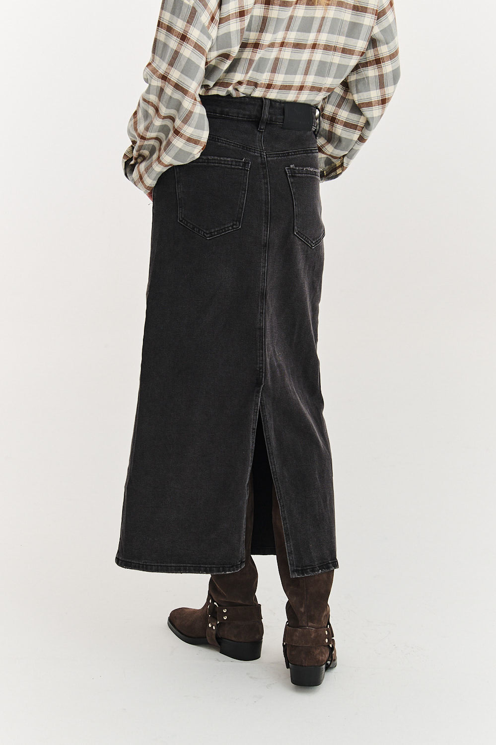Spódnica jeansowa Slow Season to must-have w każdej szafie. Ten model o długości maxi ma klasyczny, ołówkowy krój z rozporkiem z tyłu, który zapewnia swobodę ruchów. Wykonana z wysokiej jakości denimu w modnym, szarym odcieniu.