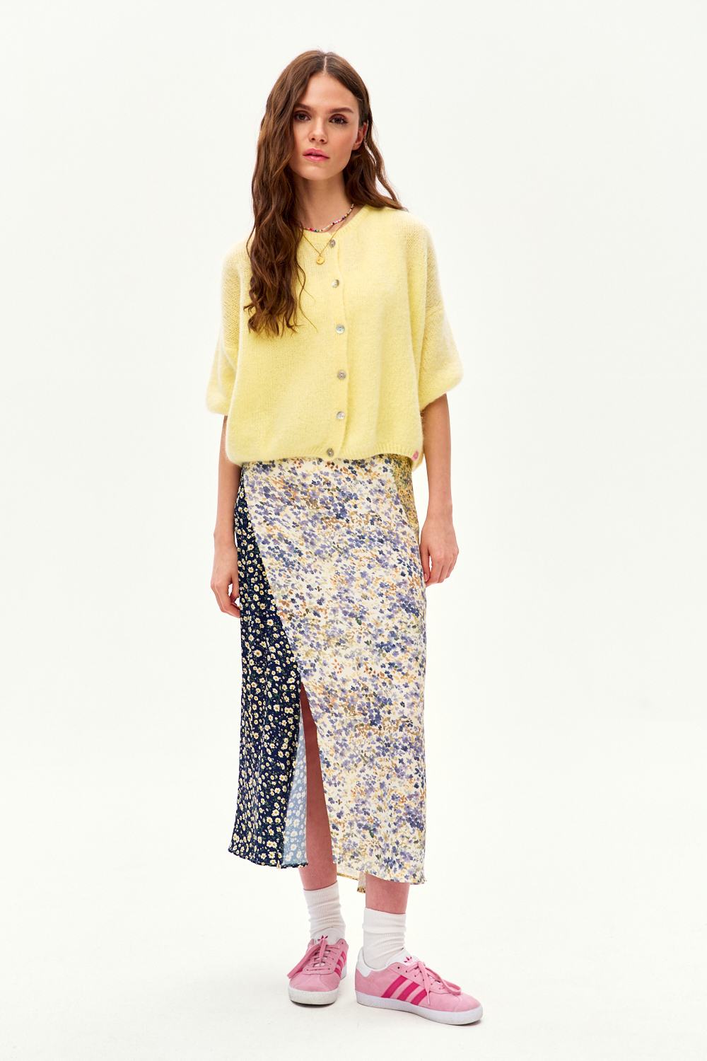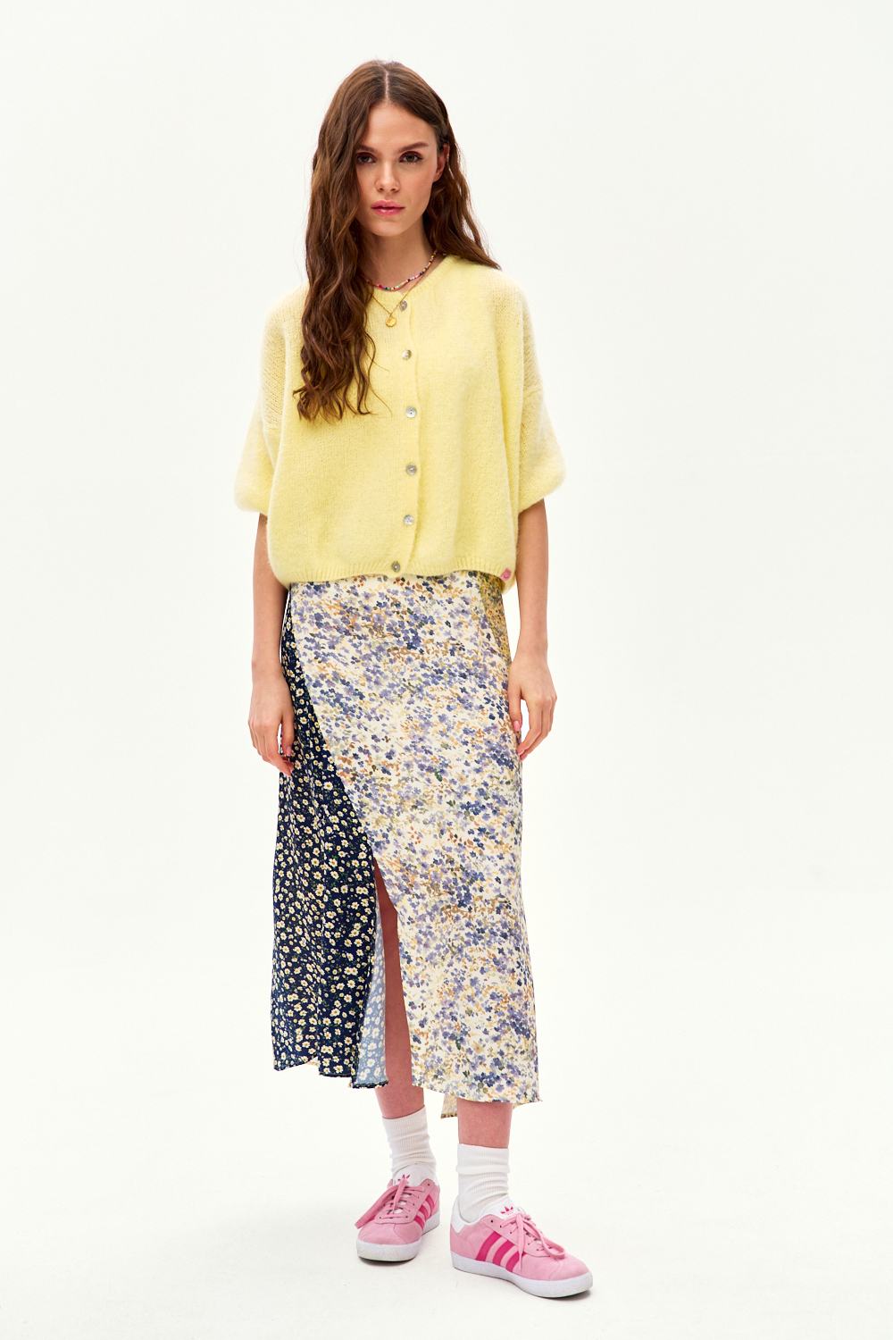 Wykonana w 100% z wiskozy, spódnica pięknie układa się w ruchu i pozwala skórze oddychać. Jej krój optycznie wydłuża sylwetkę, a asymetryczne panele dodają jej artystycznego sznytu. Zestaw ją z gładkim topem lub oversizowym swetrem.