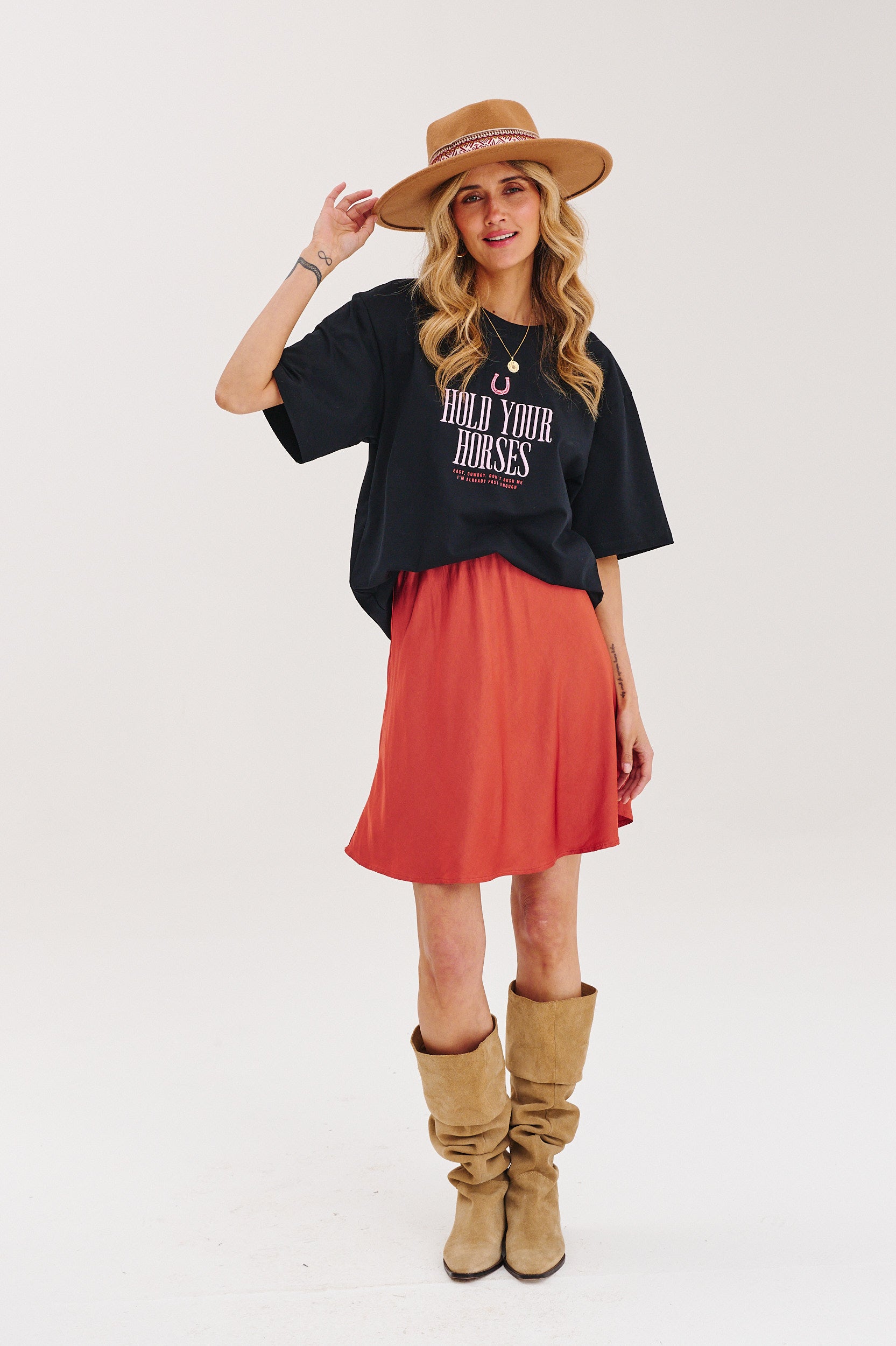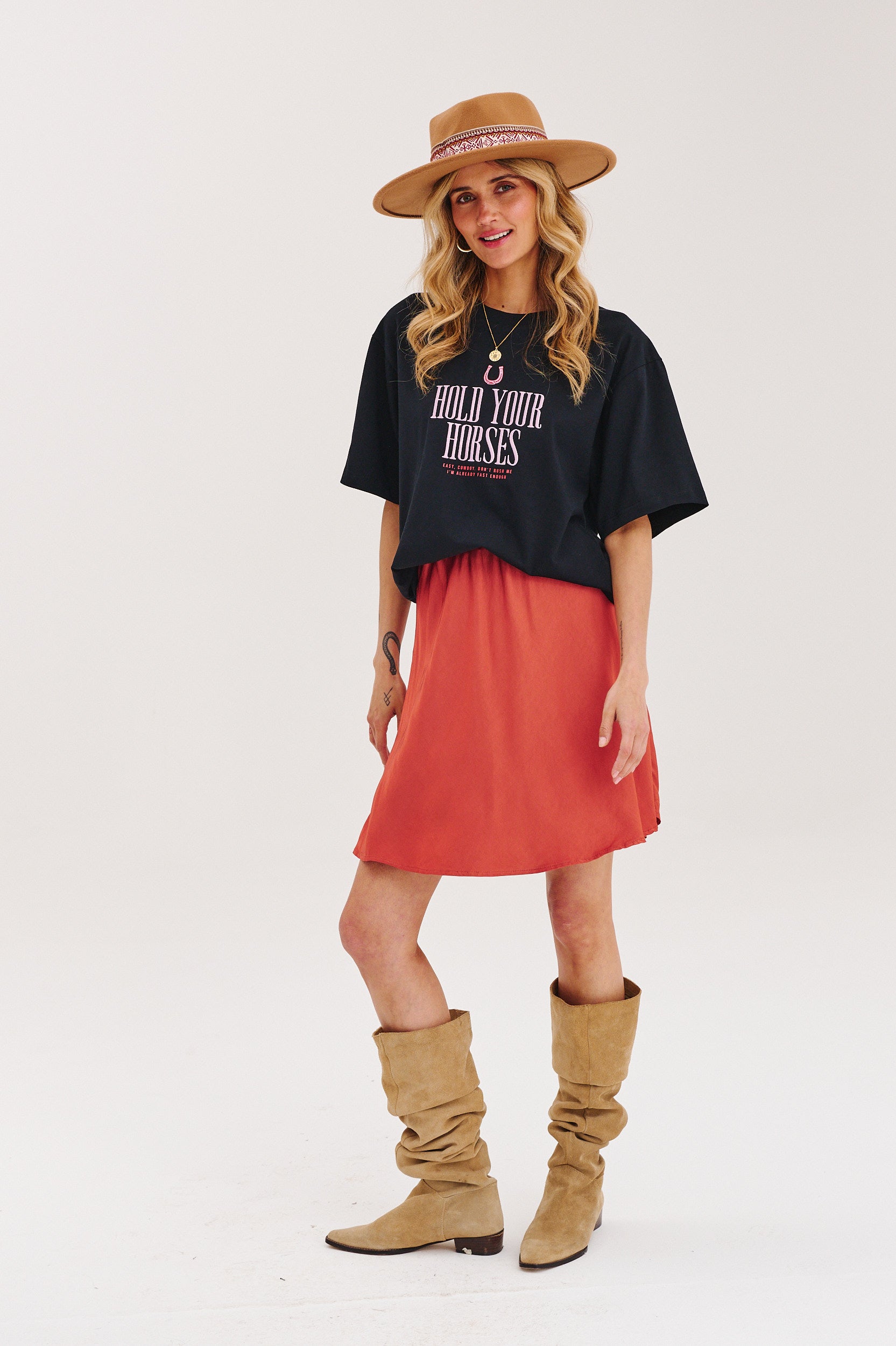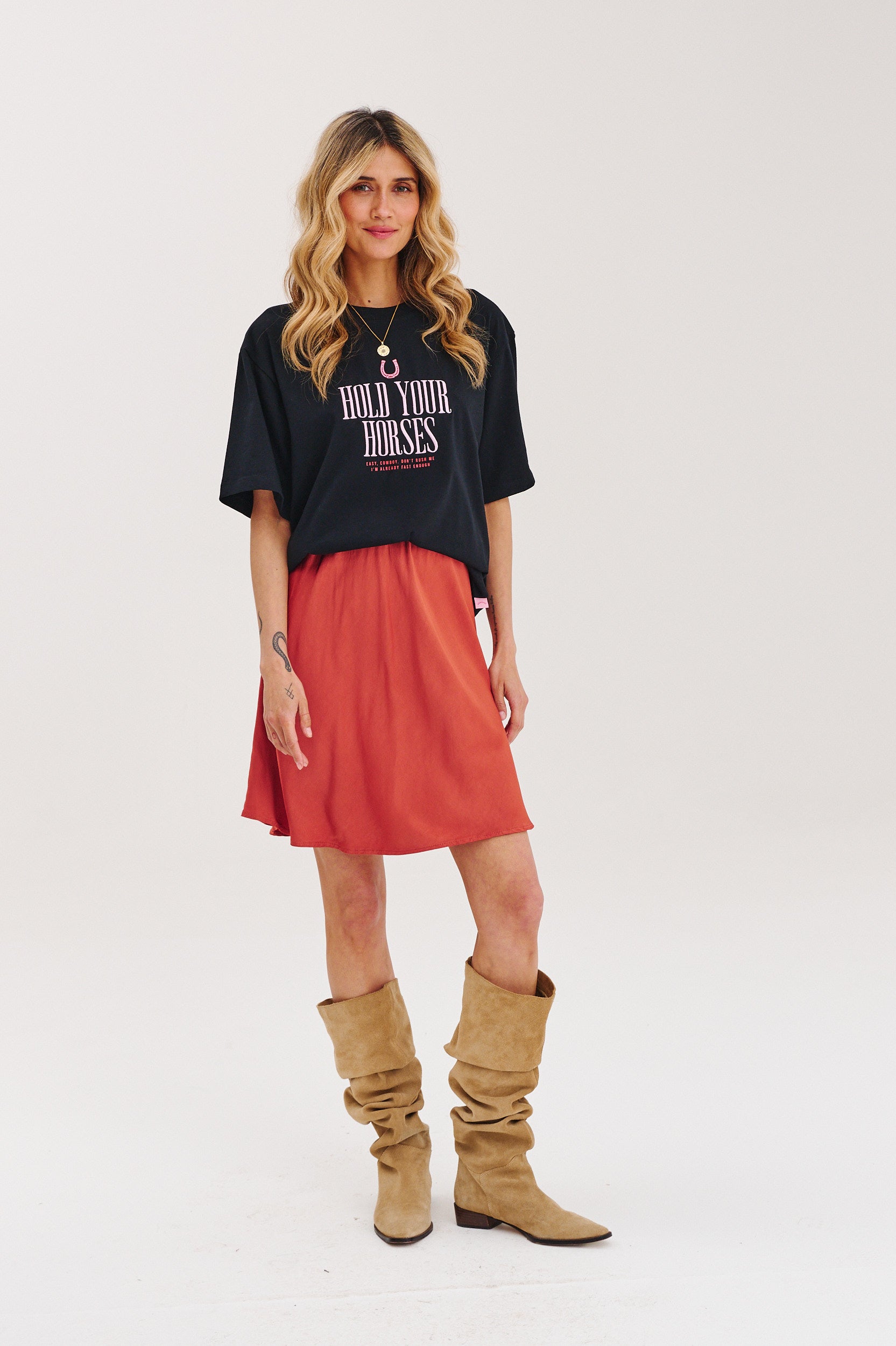 Spódniczka mini Chili Wave czyli propozycja, która doda Twojej stylizacji energii i kobiecego charakteru. Jej krój z delikatnie rozszerzanym dołem pięknie układa się w ruchu, a soczysty, głęboki odcień czerwieni sprawia, że trudno oderwać od niej wzrok.