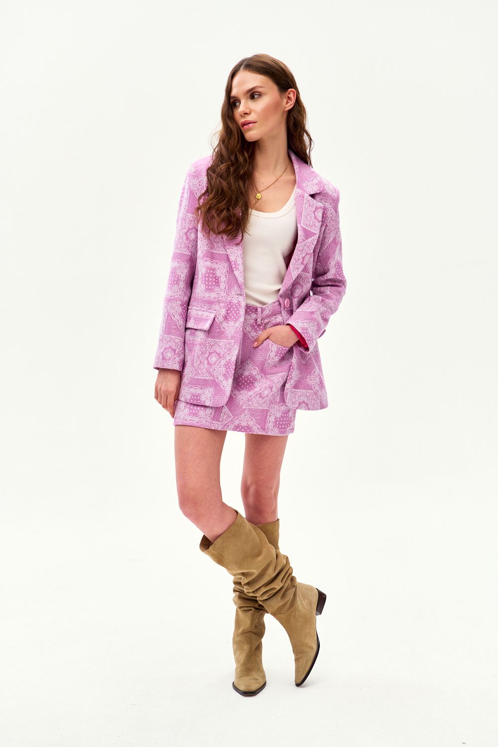 Dzięki dopasowanemu krojowi podkreśla atuty sylwetki, a różowy guzik i detale tworzą spójną całość. Paisley Romance świetnie wygląda w połączeniu z prostym białym t-shirtem lub oversizowym swetrem w chłodniejsze wieczory.