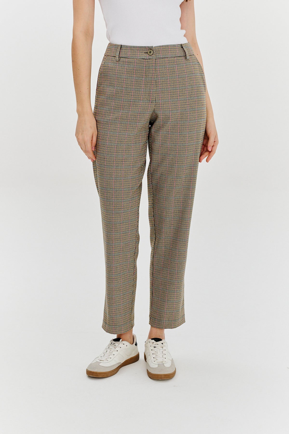 Spodnie Chasing Dreams to połączenie klasyki i nowoczesności, stworzone dla kobiet, które cenią sobie elegancję z odrobiną nonszalancji. Wykonane z tkaniny w subtelną kratkę, wpisują się w ponadczasowe trendy i dodają stylizacji wyrafinowanego charakteru. Ich szerokie nogawki podkreślają swobodę ruchu i wpisują się w estetykę effortless chic, a kontrastowy pasek w intensywnym różowym odcieniu dodaje im odważnego, niebanalnego akcentu.