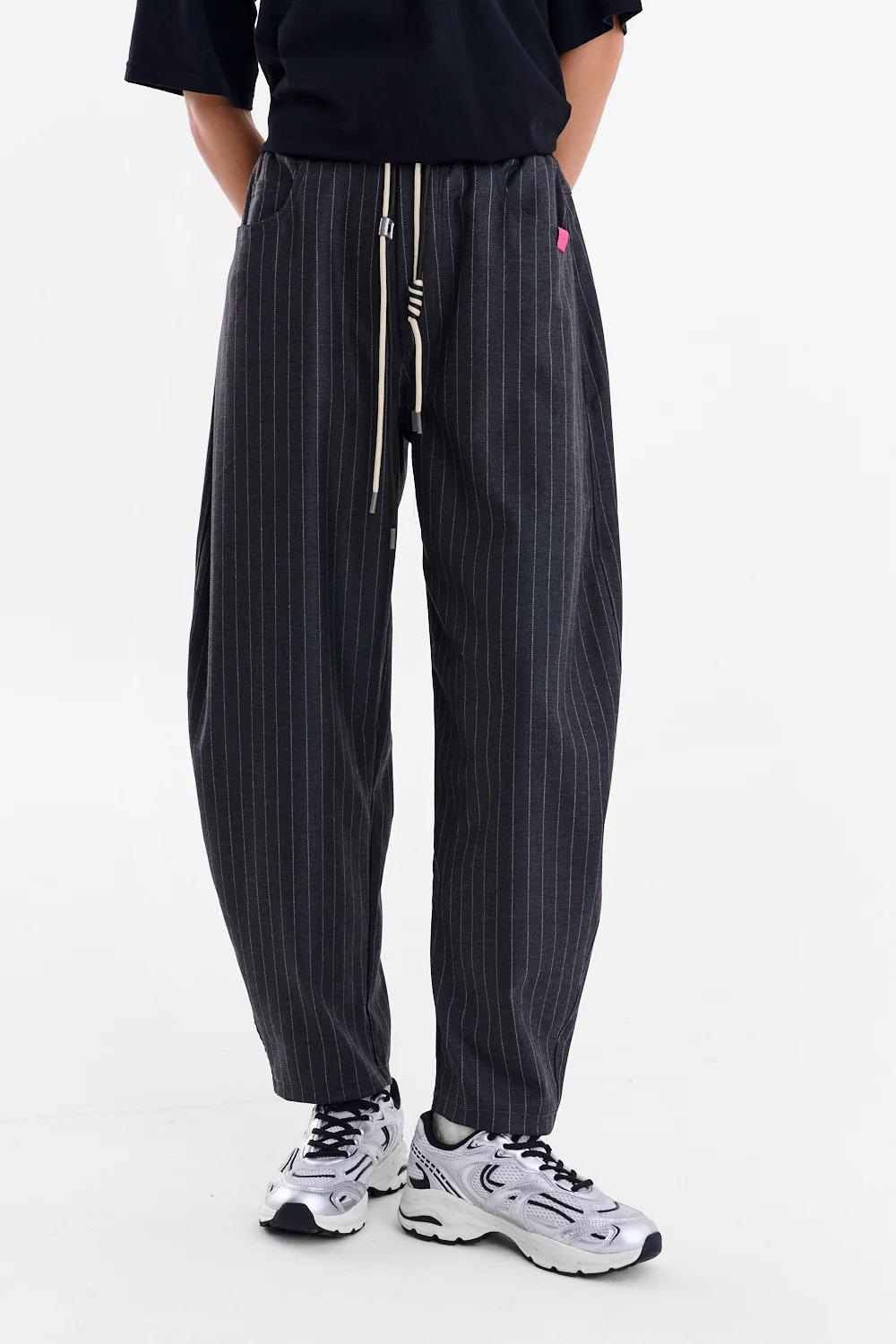 Największym atutem tych spodni jest szeroki, elastyczny pas z prążkowanej dzianiny, który idealnie dopasowuje się do talii, nie uciskając jej. Spodnie posiadają również praktyczne kieszenie z tyłu. To idealna baza do casualowych stylizacji – noś je ze sneakerami i luźnym swetrem.