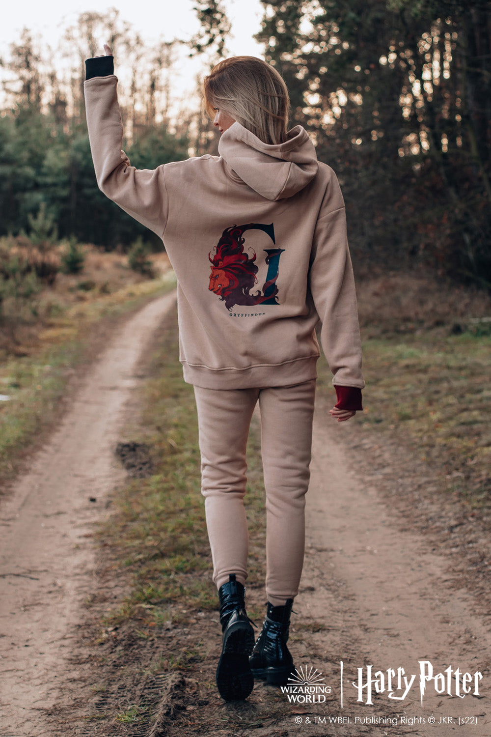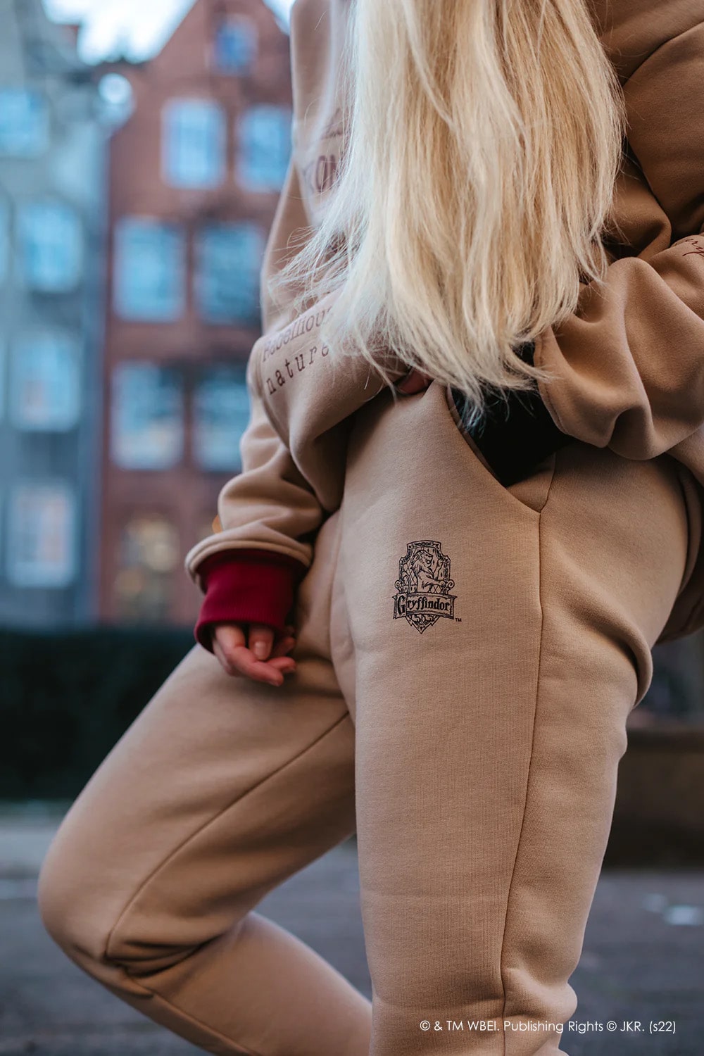 Spodnie dresowe Gryffindor powinna mieć w swojej garderobie każda fanka minimalizmu i totalnej wygody! Beżowy model posiada dwie boczne kieszenie, ściągacze na dole oraz subtelne nadruki, które ukazują, do jakiego domu naprawdę chciałabyś dołączyć!