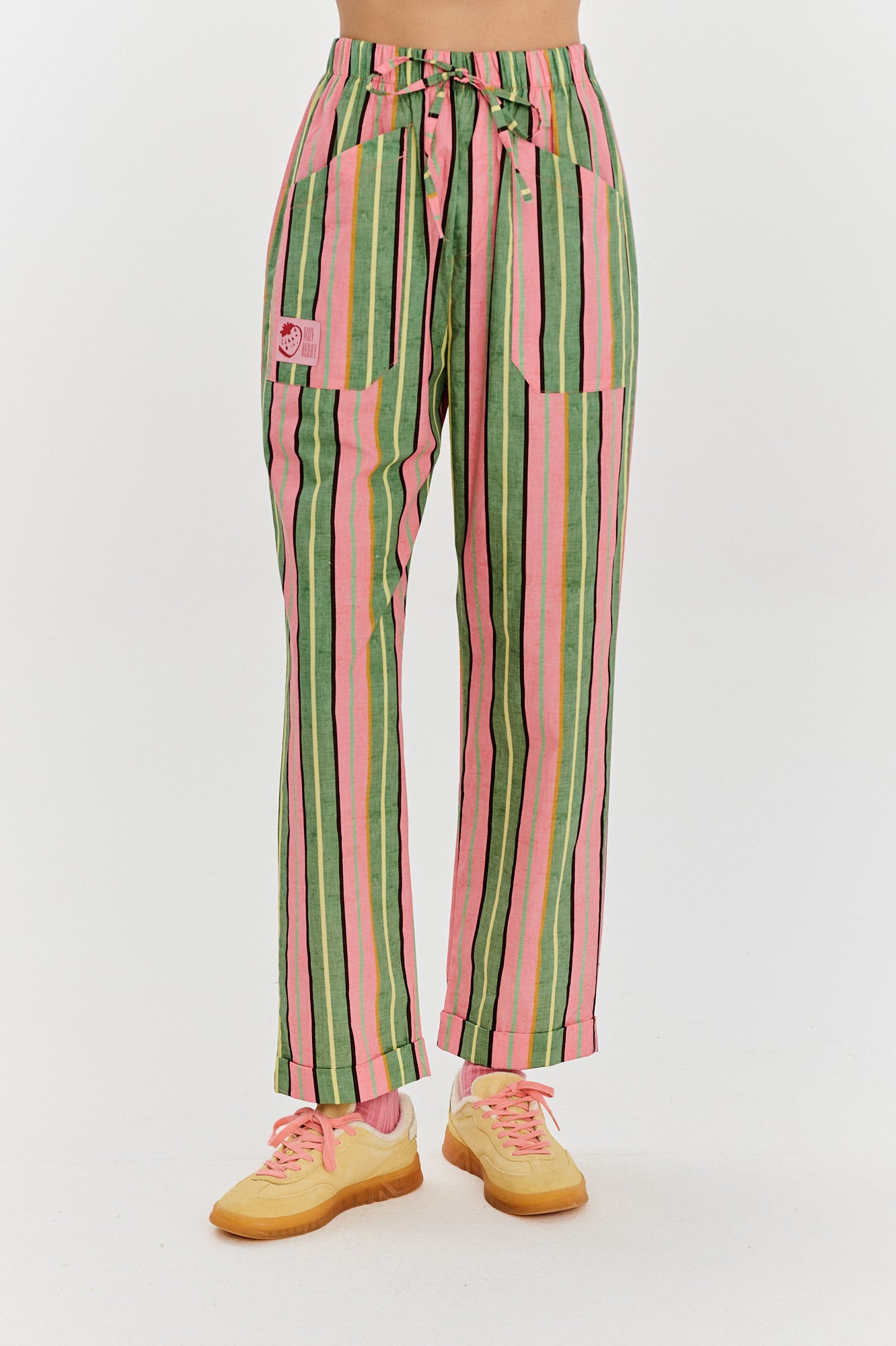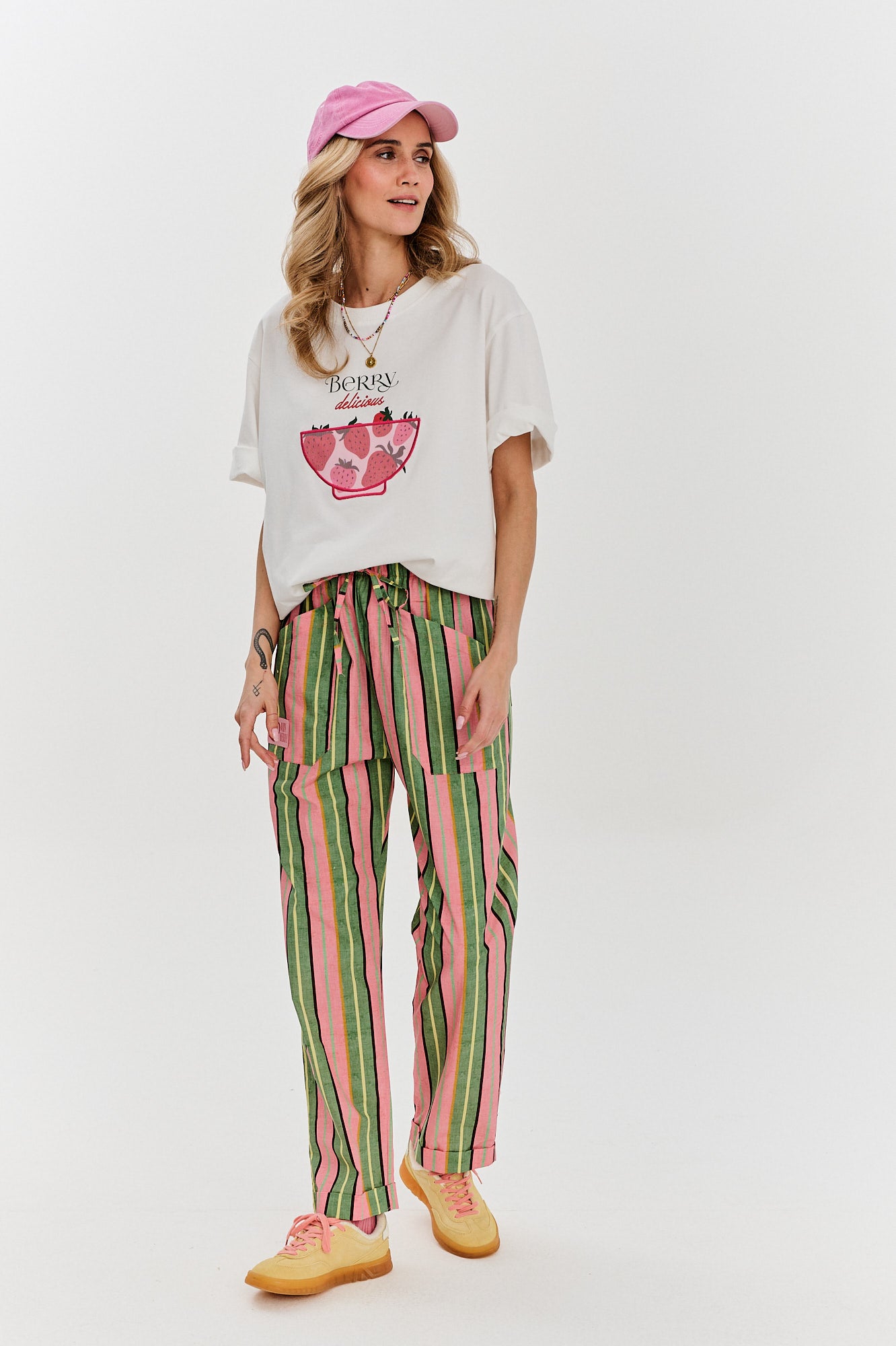 Spodnie Drift into Spring to kwintesencja swobody i stylu. Ich luźny krój jest nie tylko wygodny, ale także niezwykle modny, dodając ponadczasowego charakteru każdej stylizacji. Kolorowy wzór w paski nadaje im energetycznego akcentu.