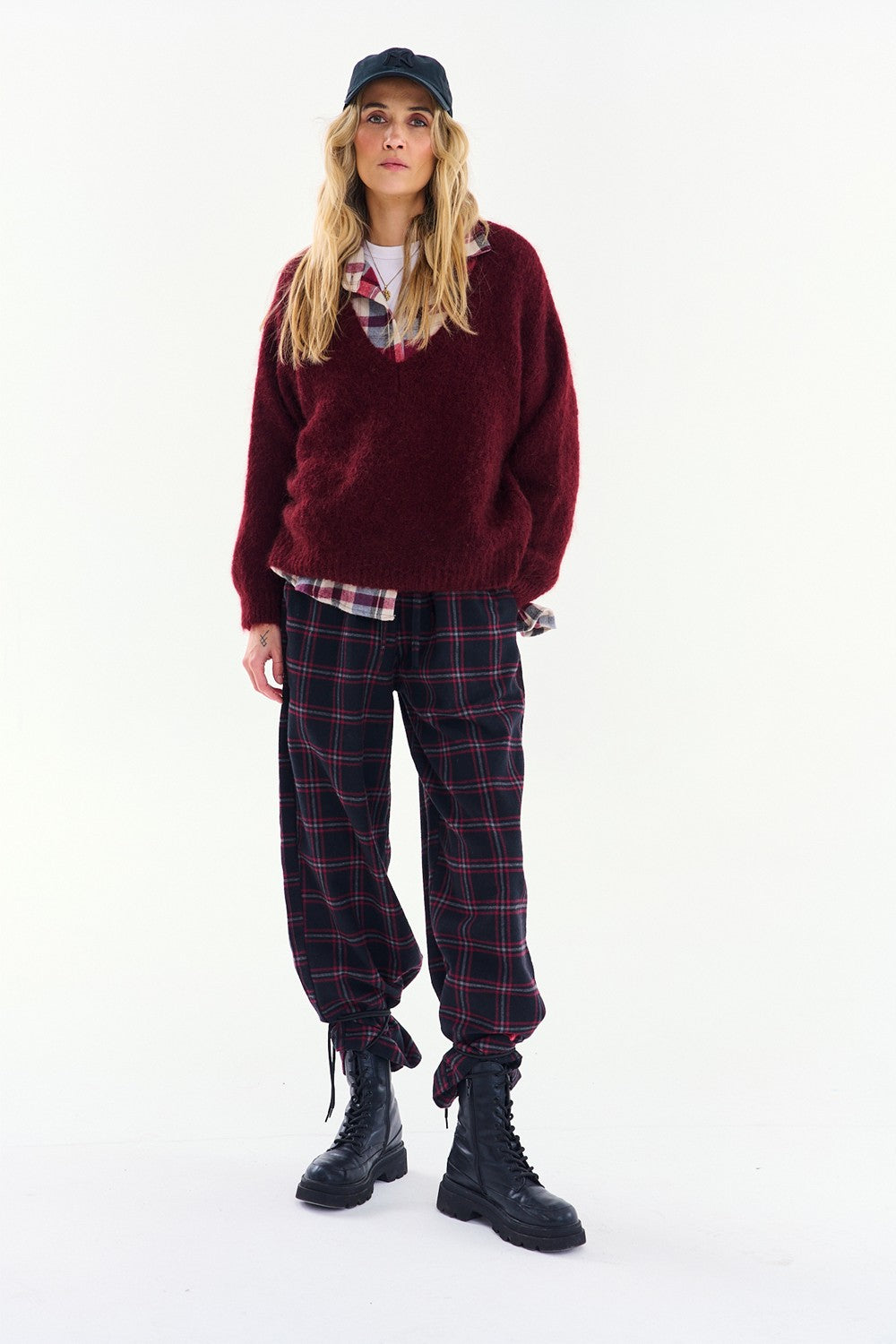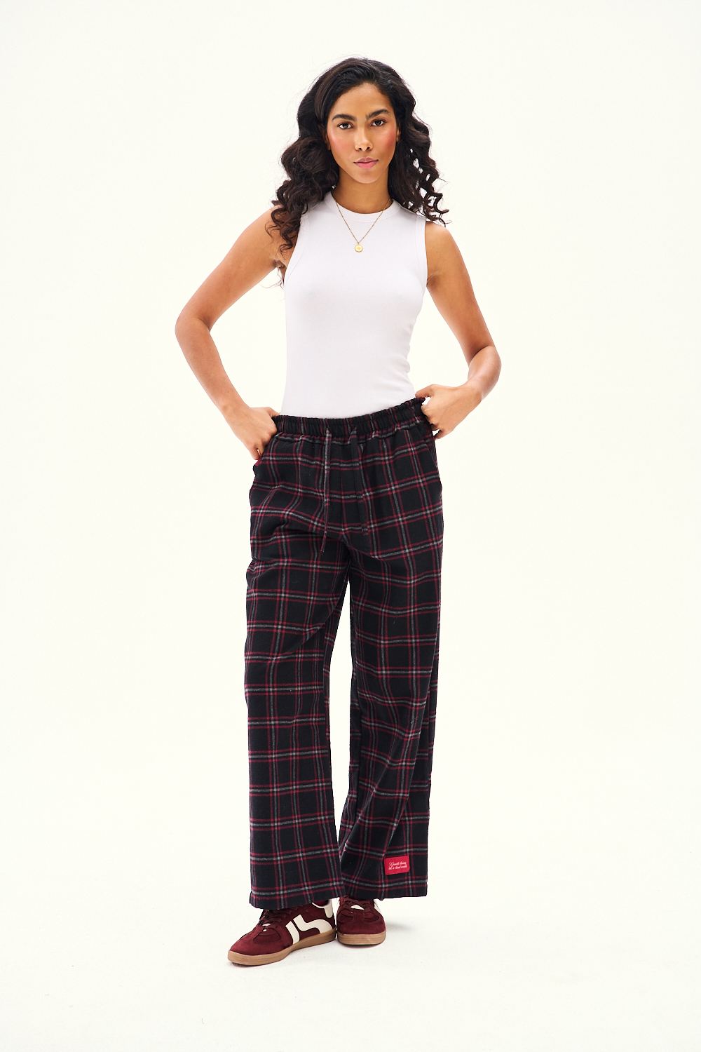 Spodnie flanelowe Offline Mode zostały stworzone dla miłośniczek komfortu bez kompromisów. Połączenie granatu i głębokiego borda tworzy szlachetną kompozycję, która nigdy nie wychodzi z mody.