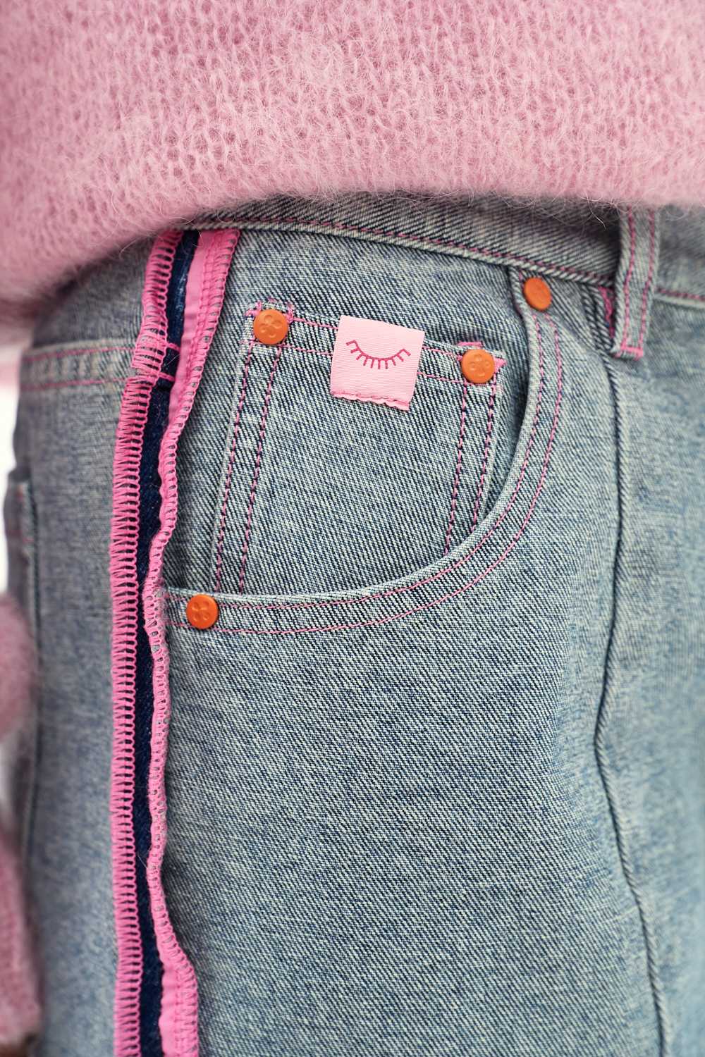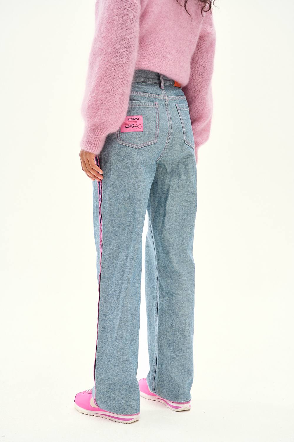Spodnie jeansowe Good Timing to denim dla fanek detalu. Prosty, luźny krój zyskał nowy wymiar dzięki kontrastowym, neonowo-różowym niciom, które podkreślają konstrukcję spodni. Pionowe przeszycia na nogawkach wydłużają sylwetkę, a surowe wykończenie dołu dodaje im charakteru.