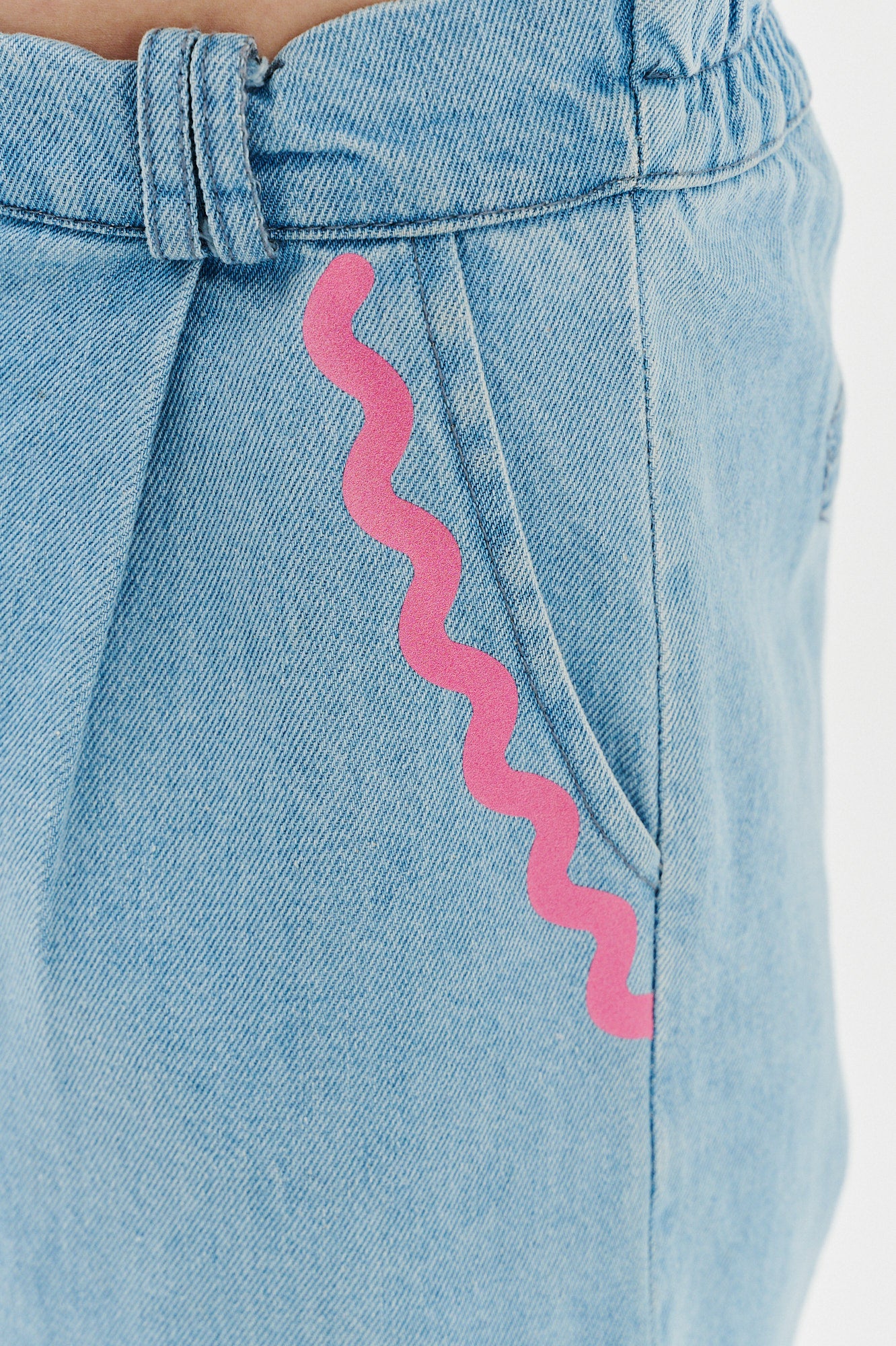 Klasyka z twistem? Zdecydowanie tak! Spodnie jeansowe Ribbon Revolution to jeansy, które wyróżniają się delikatnym, dziewczęcym printem w kształcie falowanych tasiemek przy kieszeniach – subtelny, ale wyrazisty detal, który dodaje uroku każdej stylizacji.