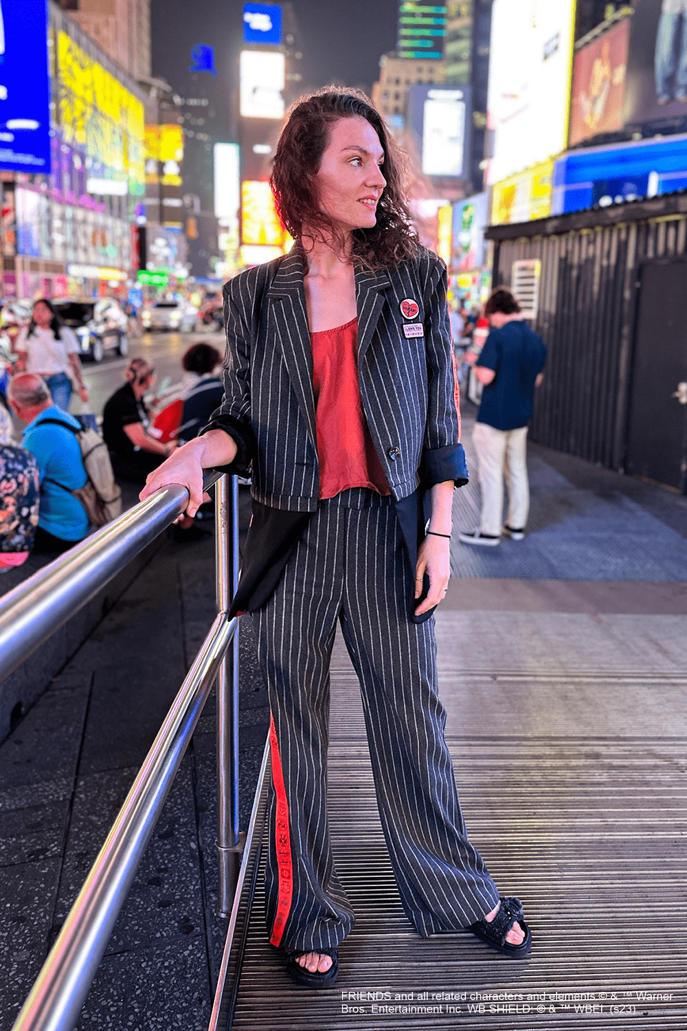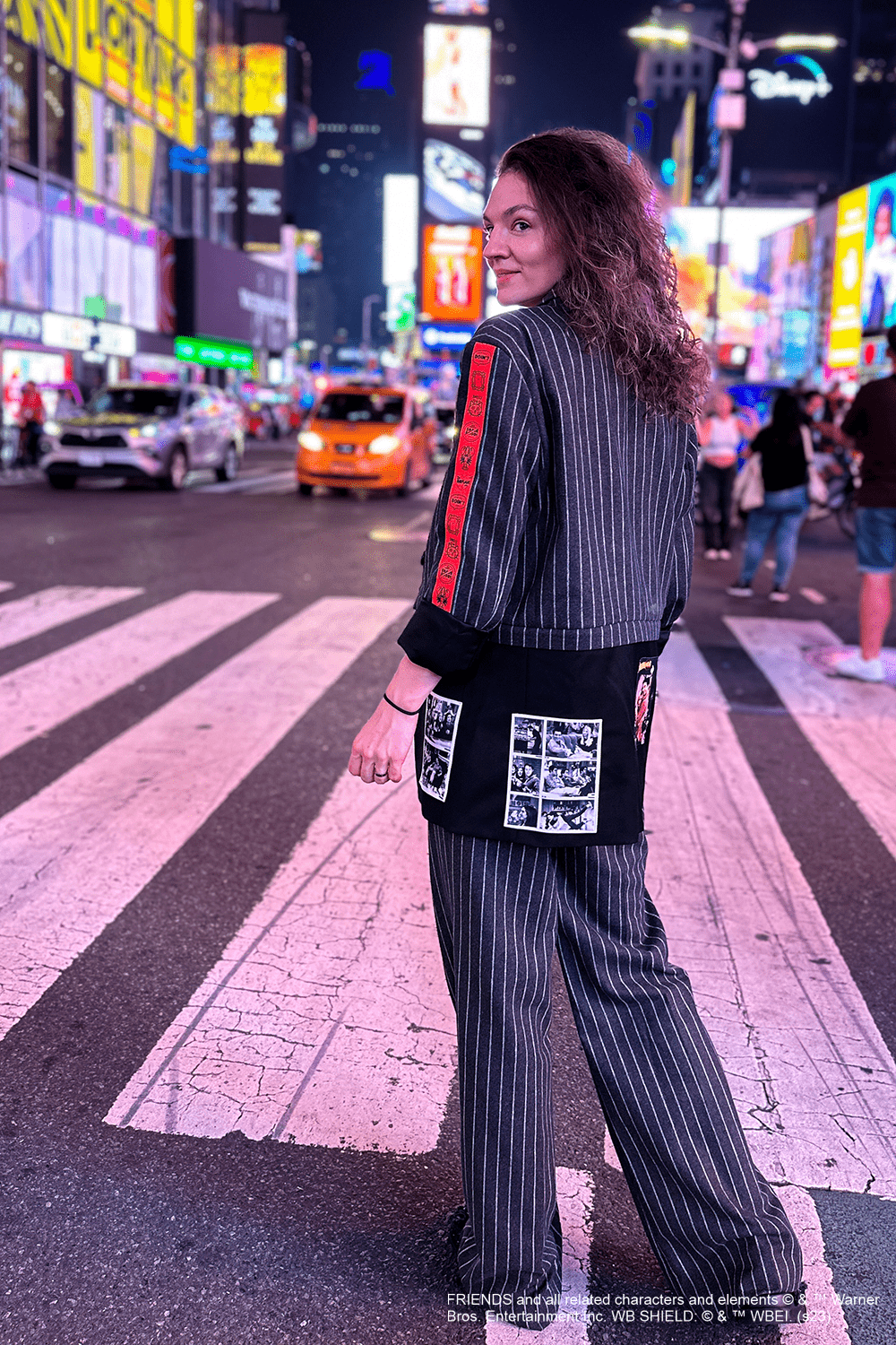 Delikatne pasy, które zdobią te spodnie, nadają im wyjątkowego charakteru i subtelnie nawiązują do kultowego show. To detale, które podkreślają Twoją miłość do Friends, jednocześnie pozostając eleganckim elementem garderoby.