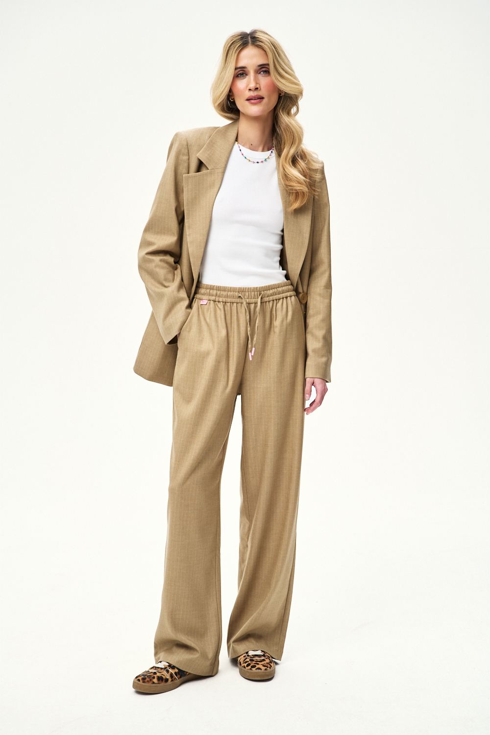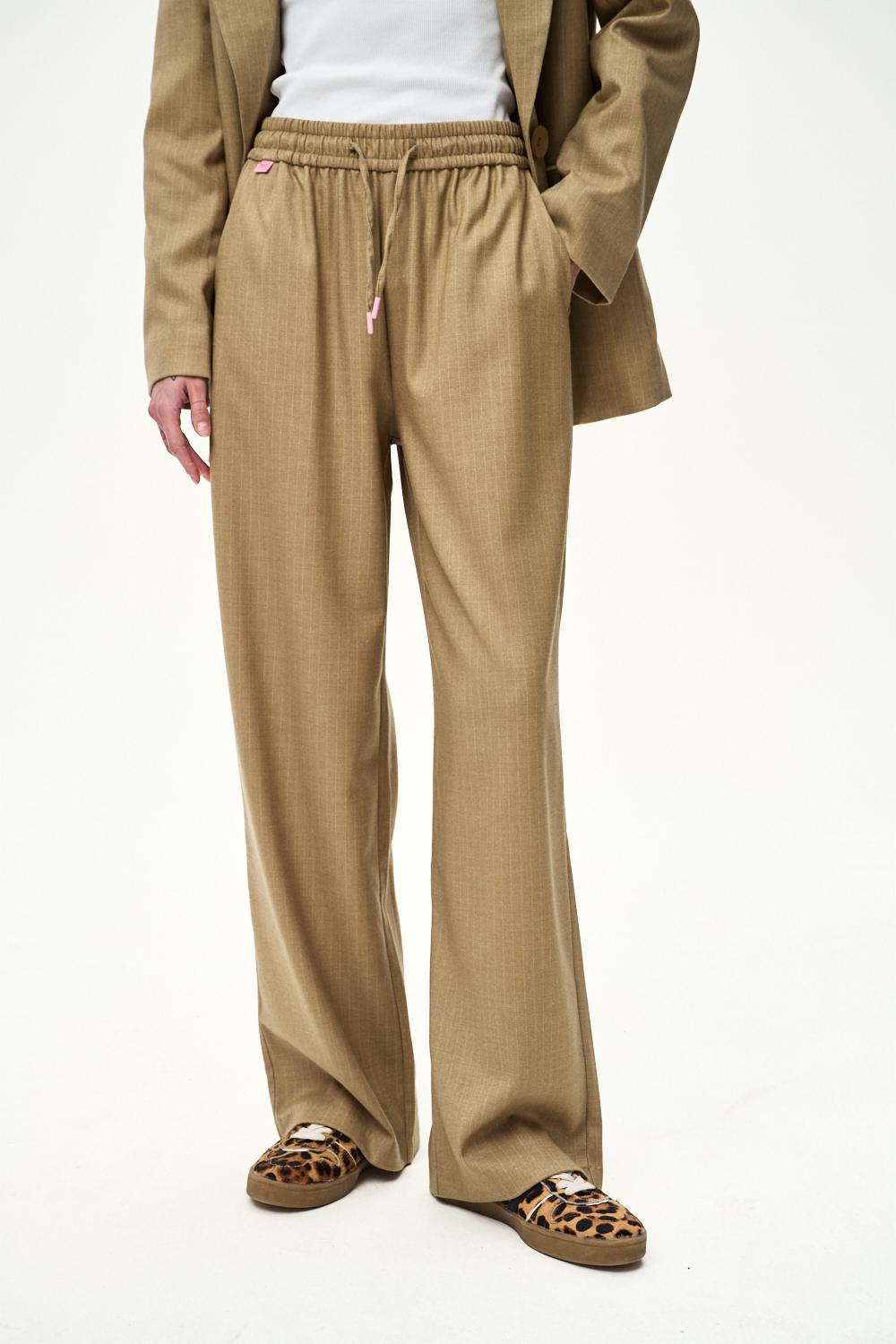 Spodnie Silent Spark to idealny wybór, gdy chcesz wyglądać profesjonalnie. Brązowo-beżowy odcień i subtelny wzór pionowych prążków optycznie wydłużają sylwetkę.