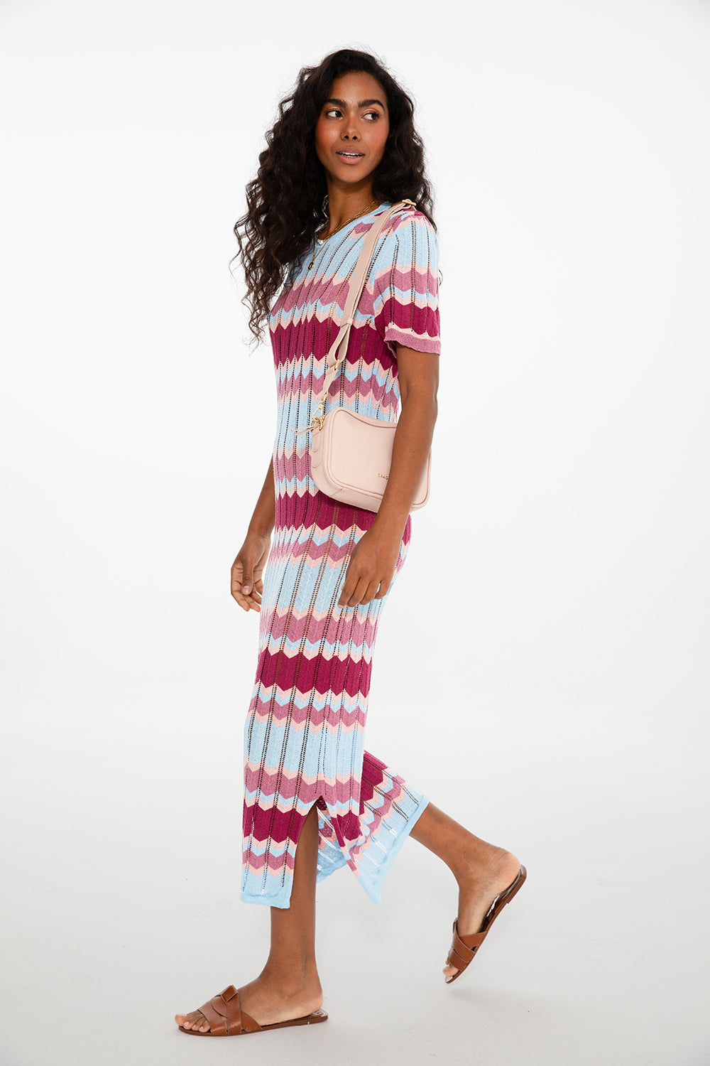 Miękki, elastyczny materiał otula sylwetkę, podkreślając kobiecą figurę, a krótkie rękawki i długość midi czynią ją doskonałą zarówno na miejskie spacery, jak i urlopowe wieczory. Wystarczy dodać ulubione klapki lub sandały — i gotowe!
