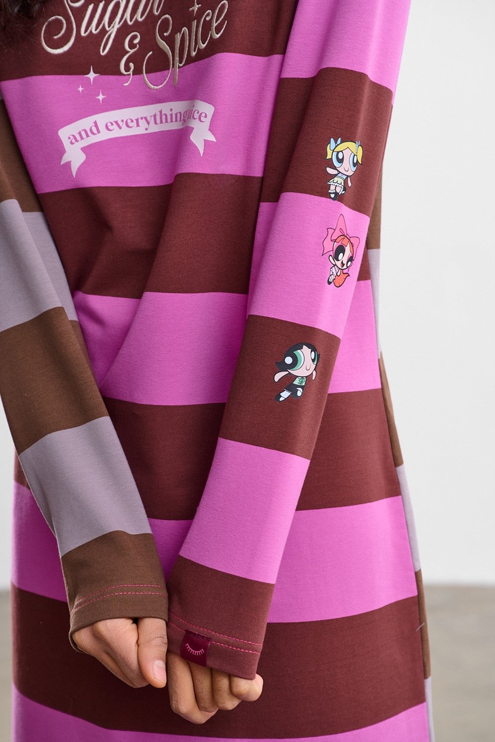 Wyjątkowym elementem jest drobny nadruk z postaciami atomówek. To subtelny detal, który przyciąga wzrok i dodaje sukience charakteru. Idealna na co dzień, do trampek lub ciężkich botków, dla tych, które cenią sobie oryginalność i wygodę.