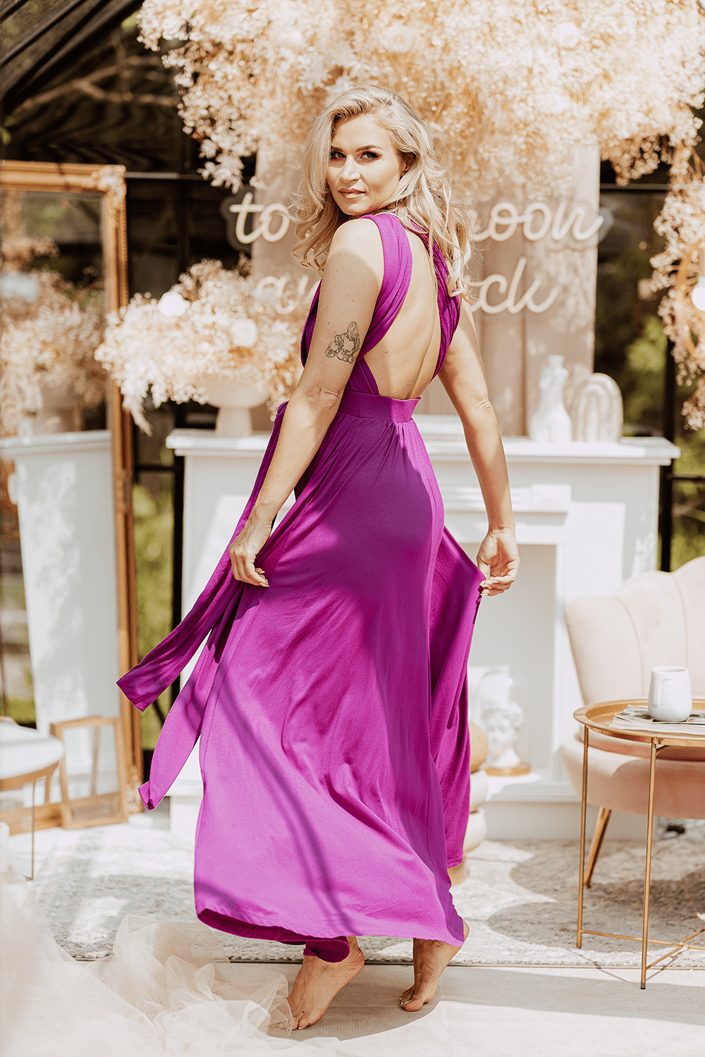 Infinity to sukienka która daje ci dziesiątki możliwości stylizacji, a teraz dostępna jest także w pięknym odcieniu magenta. Zawiąż szarfy w pasie, na szyi, na skos czy prosto - wyobraźnia jest twoim limitem. Ta sukienka podkreśli twoją talię i będzie przepięknie wyglądać w środku czy falując na wietrze, więc możesz ją zabrać zarówno na przyjęcie jak i piknik w lesie.
