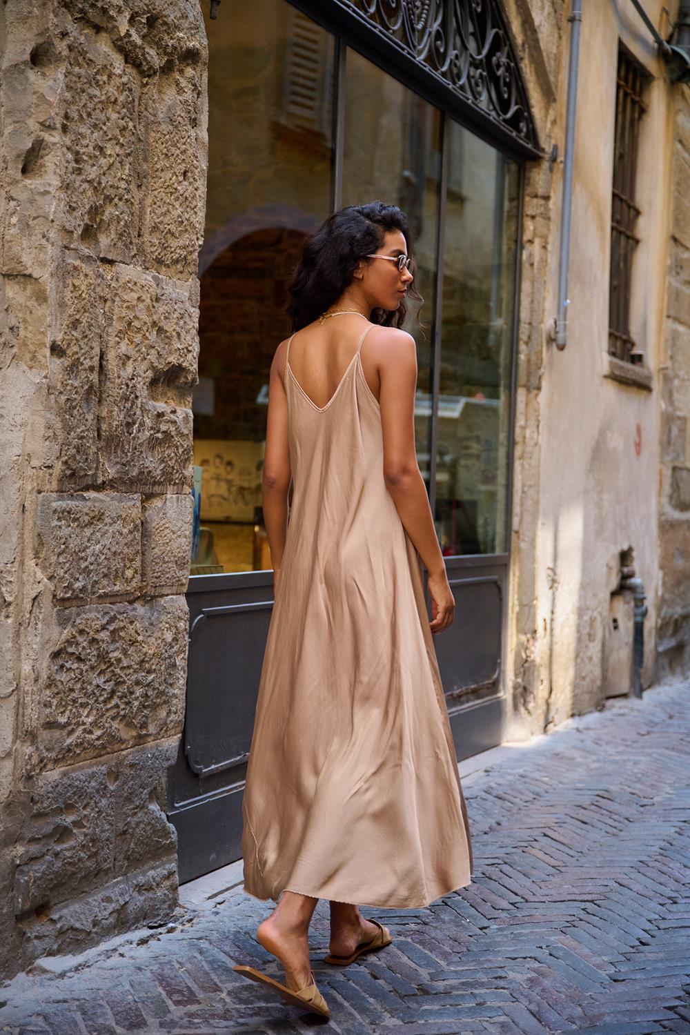 Sukienka bieliźniana Champagne Chic o długości maxi w kolorze szampańskim wykonana jest z miękkiej wiskozy, która delikatnie opływa ciało, tworząc elegancki i zmysłowy wygląd.