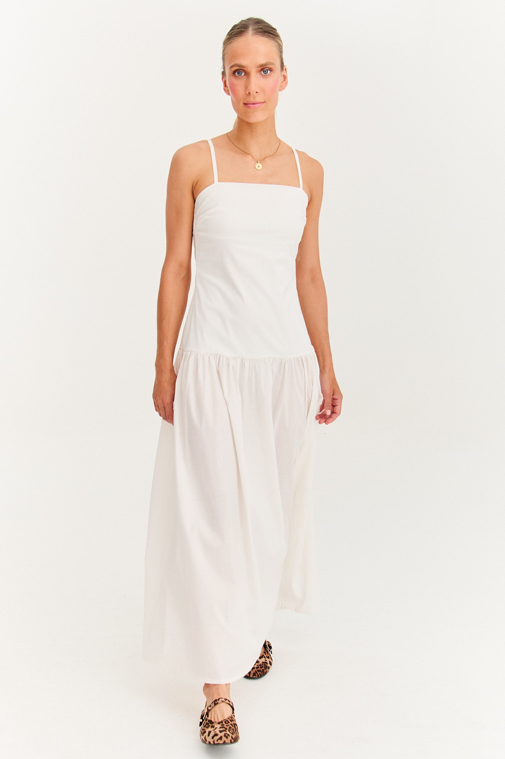 Sukienka maxi na ramiączkach Day Whisper to minimalistyczna perełka, która urzeka lekkością formy i subtelnym urokiem. Prosty dekolt, cienkie ramiączka i długość maxi nadają jej ponadczasowy charakter, który z łatwością wpisze się w każdą letnią garderobę. Wykonana z bawełnianej tkaniny z domieszką elastanu, zapewnia komfort i swobodę ruchów przez cały dzień.