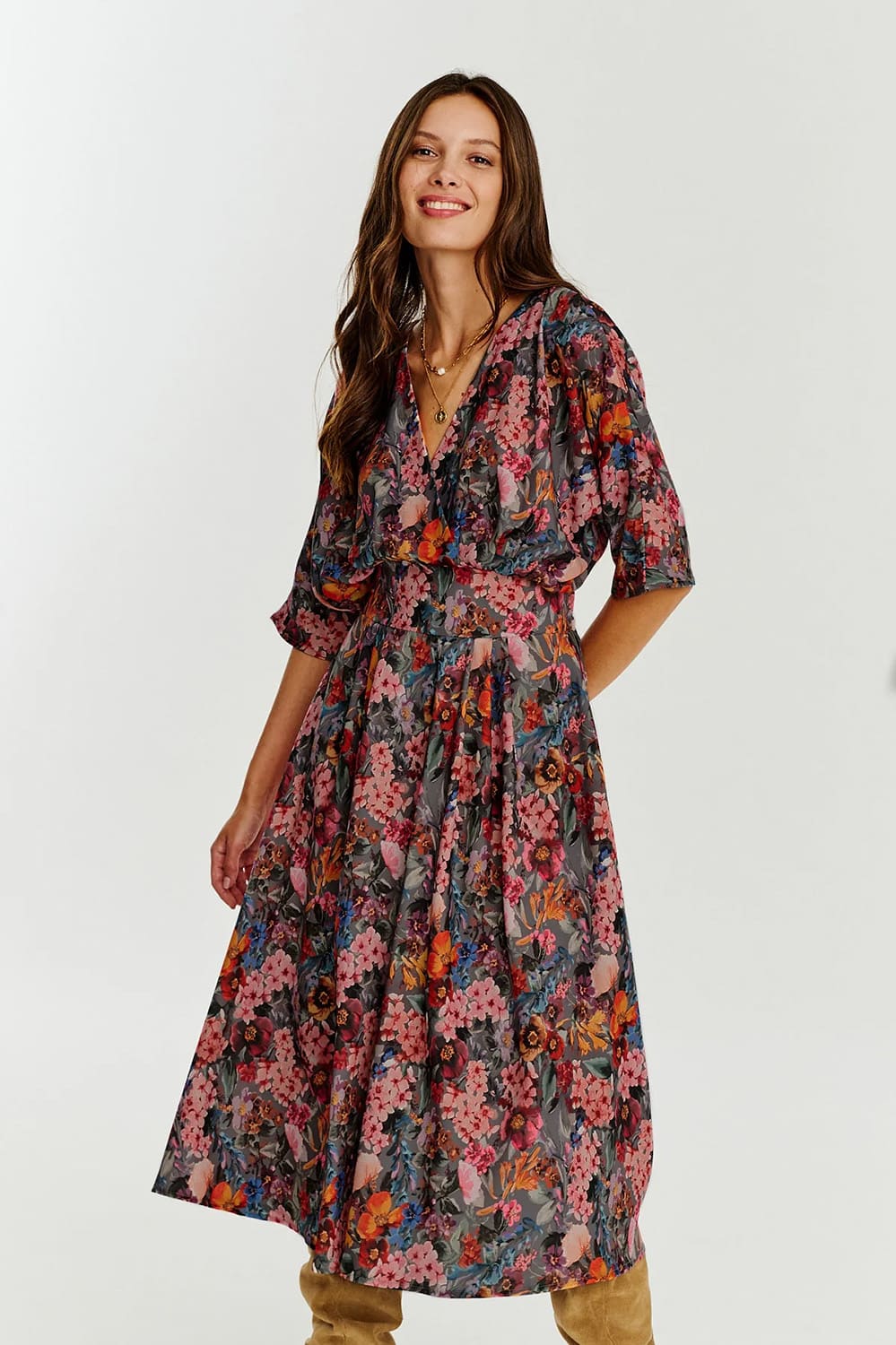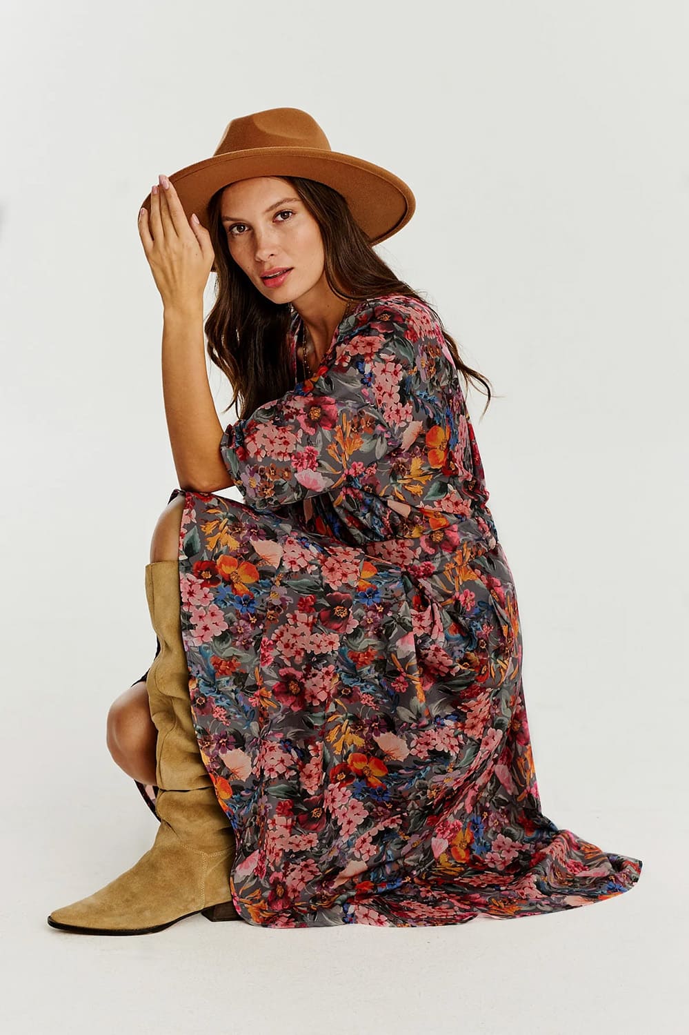 Zachwyć się wyjątkowym wzorem sukienki midi Floral Sweetness. W eleganckim wzorze w kwiaty, sukienka przywodzi na myśl jesienne bukiety. Ta sukienka to wyjątkowy wybór dla Ciebie, jeśli pragniesz poczuć się naprawdę kobieco.