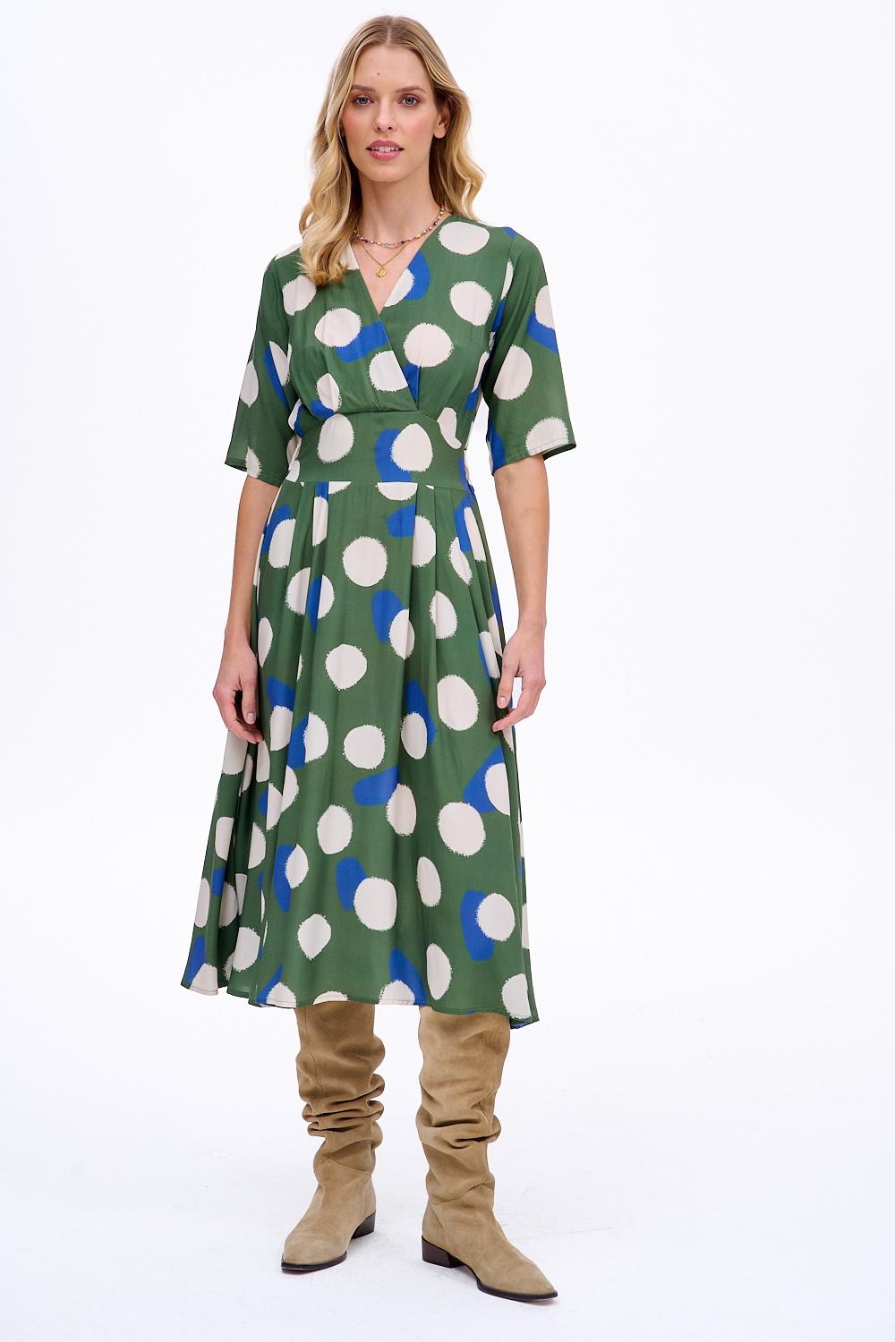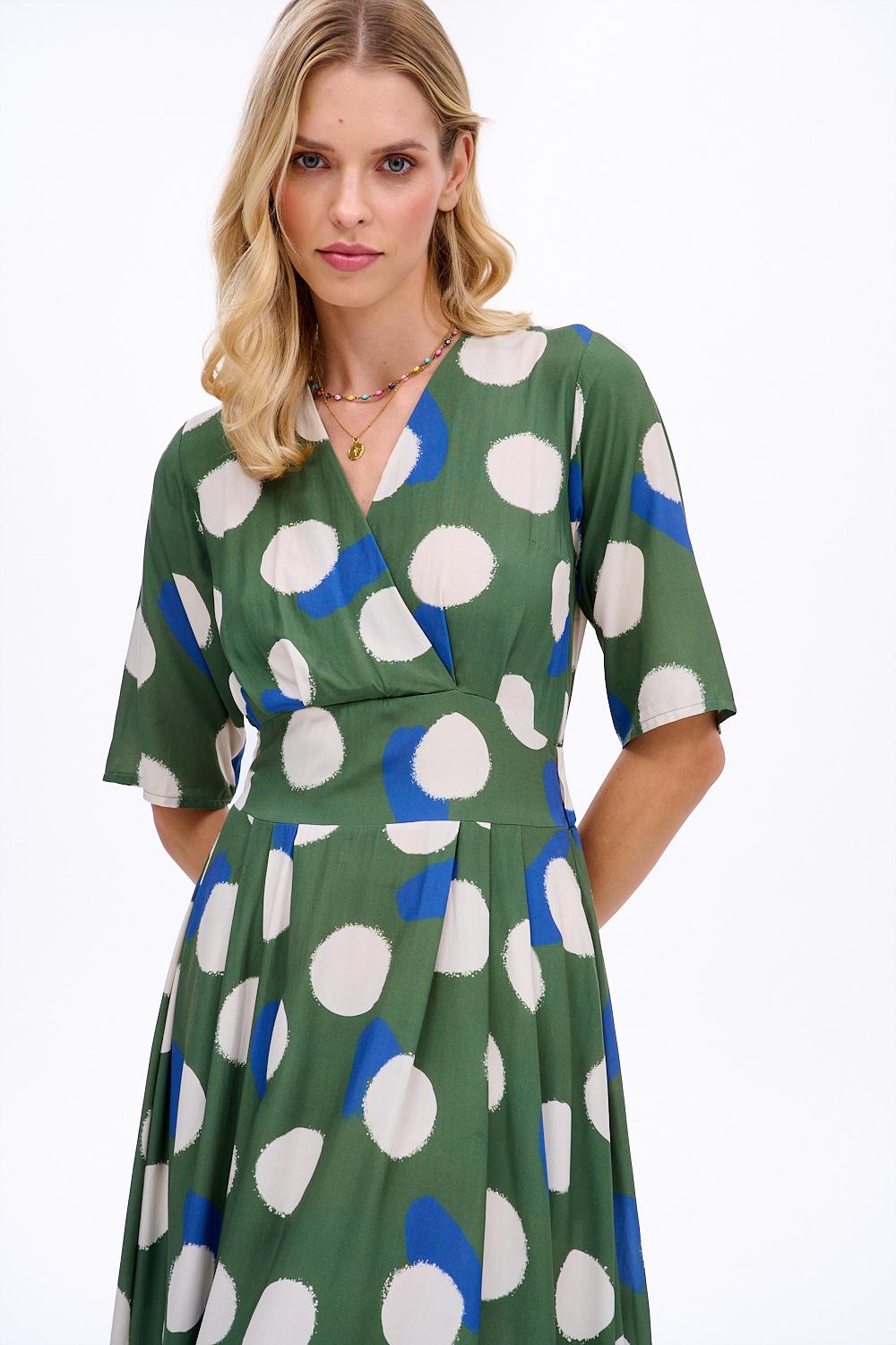 Sukienka midi Lucky Dot zachwyca oryginalnym wzorem i swobodnym krojem. Kimonowe rękawy i pasek w talii pięknie modelują sylwetkę, a przewiewna wiskoza gwarantuje maksymalny komfort noszenia w cieplejsze dni. To idealny wybór dla kobiet, które cenią sobie swobodę i modny wygląd.